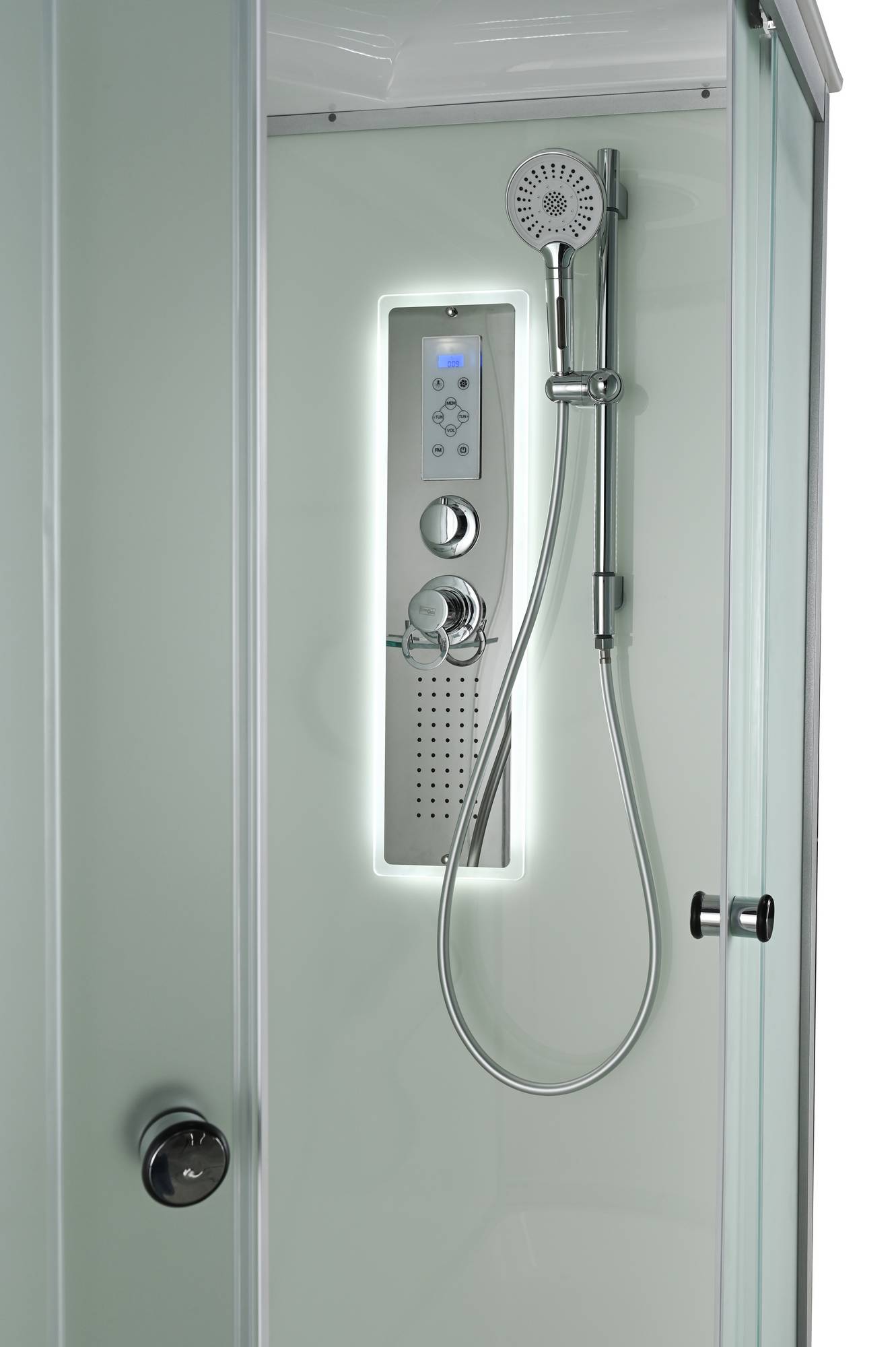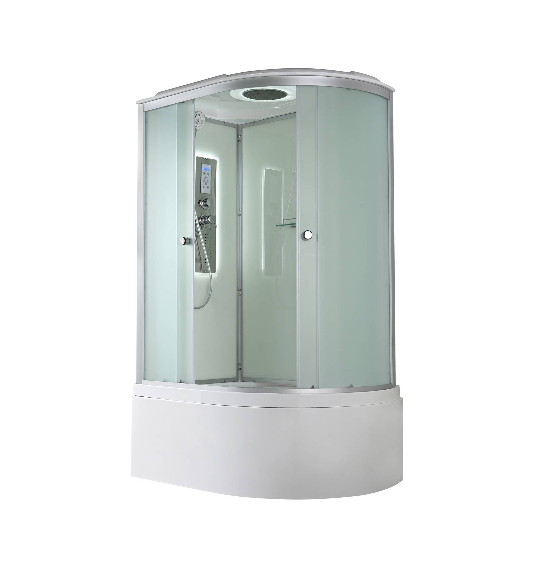 Стильная душевая кабина AvaCan D5012L LED сочетает в себе высокую функциональность, практичность и надежность. При изготовлении применяется безопасное закаленное стекло толщиной 4 мм (матовое), надежно фиксируемое алюминиевым профилем. Сборка без силикона (увеличивает срок службы), внутренняя сборка(облегчает установку и ревизию; позволяет установить в ограниченном пространстве), смеситель резьбовой (без хомутов). Съемный экран поддона (позволяет осуществлять ревизию сифона). Цвет профиля матовый хром. Двойные металлические ролики дверей (увеличивают срок службы).В комплекте : душевая штанга, полочка, тропический (верхний) душ, арома-лейка с витамином С (картридж съемный), сенсорный пульт (блютуз, радио, LED подсветка в крыше и в центральной панели, вентелятор.)