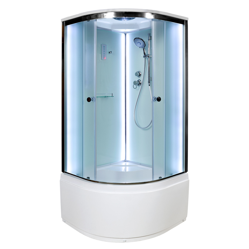 Стильная душевая кабина с внутренней сборкой AvaCan D511S LED сочетает в себе высокую функциональность, практичность и надежность. Для изготовления применяют безопасное закаленное стекло толщиной 4 мм, надежно фиксируемое алюминиевым профилем. Цвет профиля хром. В комплекте встроенное сидение, сифон, полочка, зеркало, сенсорный пульт управления, смеситель, переключатель режимов, передний съемный экран, донный клапан (клик-клак), душевой гарнитур, тропический (верхний) душ, вентиляция, радио.