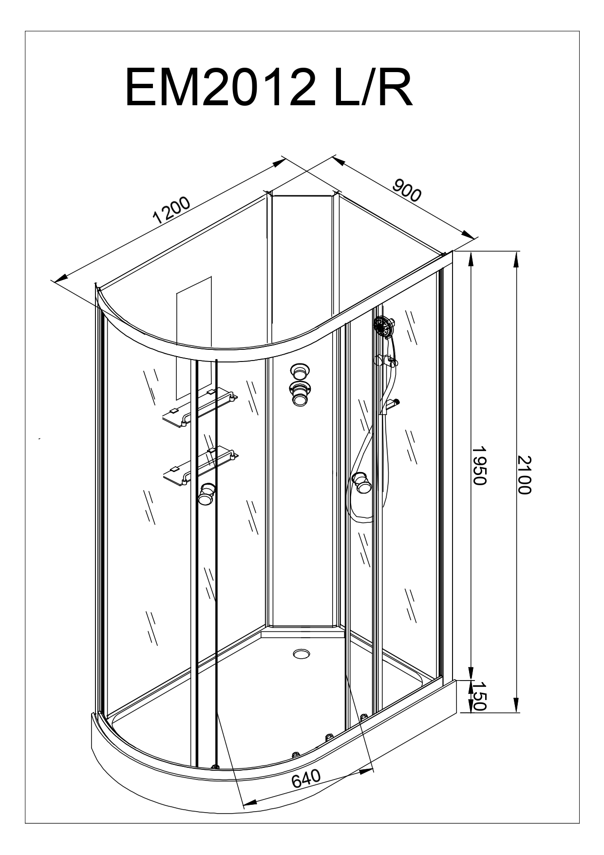 Стильная душевая кабина с внутренней сборкой AvaCan EM 2012 N R сочетает в себе высокую функциональность, практичность и надежность. Для изготовления применяют безопасное закаленное стекло толщиной 5 мм, надежно фиксируемое алюминиевым профилем. Цвет профиля хром. В комплекте зеркало, переключатель режимов, смеситель, полочки, вставка в поддон