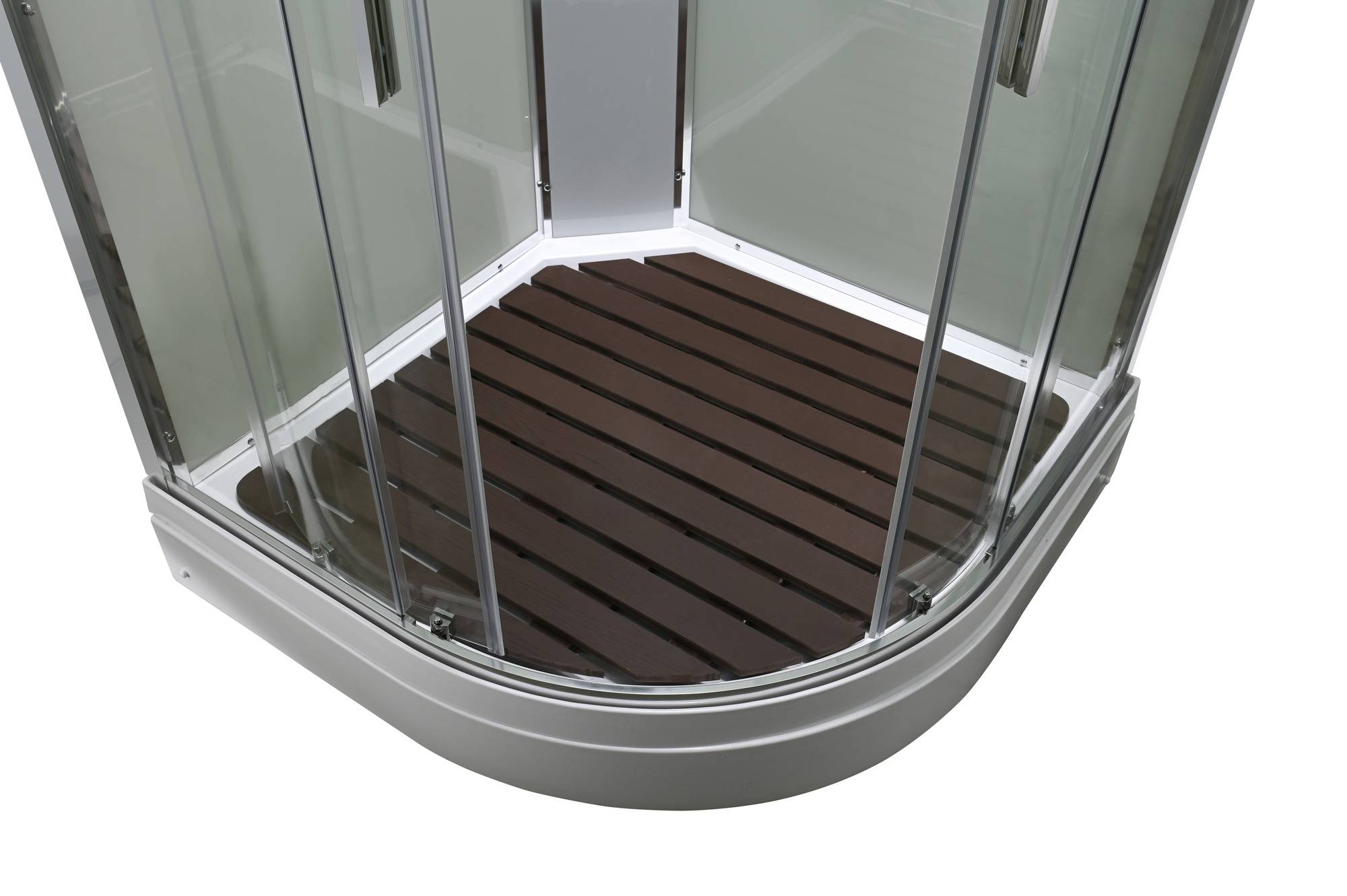 Стильная душевая кабина AvaCan EM2011T сочетает в себе высокую функциональность, практичность и надежность. При изготовлении применяется безопасное закаленное стекло толщиной 5 мм (прозрачное), надежно фиксируемое алюминиевым профилем. Сборка без силикона (увеличивает срок службы), внутренняя сборка(облегчает установку и ревизию; позволяет установить в ограниченном пространстве), смеситель резьбовой (без хомутов). Съемный экран поддона (позволяет осуществлять ревизию сифона). Цвет профиля хром. Двойные металлические ролики дверей (увеличивают срок службы).В комплекте : душевая штанга, две полочки , тропический (верхний) душ, арома-лейка с витамином С (картридж съемный),полимерная вставка в поддон(имитация дерева),сифон, ручки дверей из нержавейки , двойные ролики .
