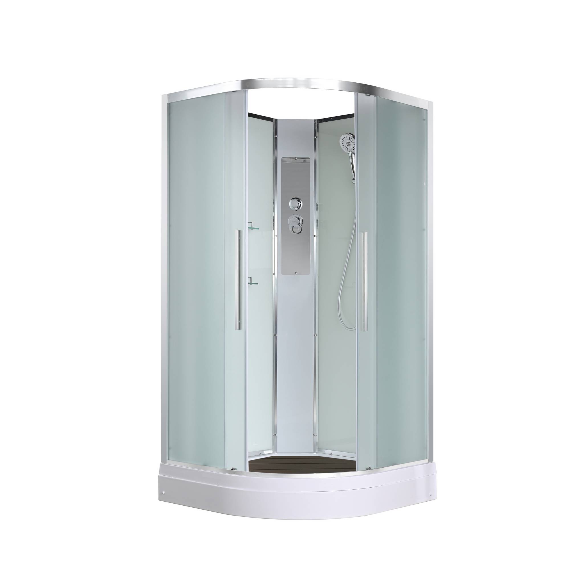 Стильная душевая кабина AvaCan EM2090N сочетает в себе высокую функциональность, практичность и надежность. При изготовлении применяется безопасное закаленное стекло толщиной 5 мм (матовое), надежно фиксируемое алюминиевым профилем. Сборка без силикона (увеличивает срок службы), внутренняя сборка(облегчает установку и ревизию; позволяет установить в ограниченном пространстве), смеситель резьбовой (без хомутов). Съемный экран поддона (позволяет осуществлять ревизию сифона). Цвет профиля хром. Двойные металлические ролики дверей (увеличивают срок службы).В комплекте : душевая штанга, две полочки , арома-лейка с витамином С (картридж съемный),полимерная вставка в поддон(имитация дерева),сифон, ручки дверей из нержавейки , двойные ролики .