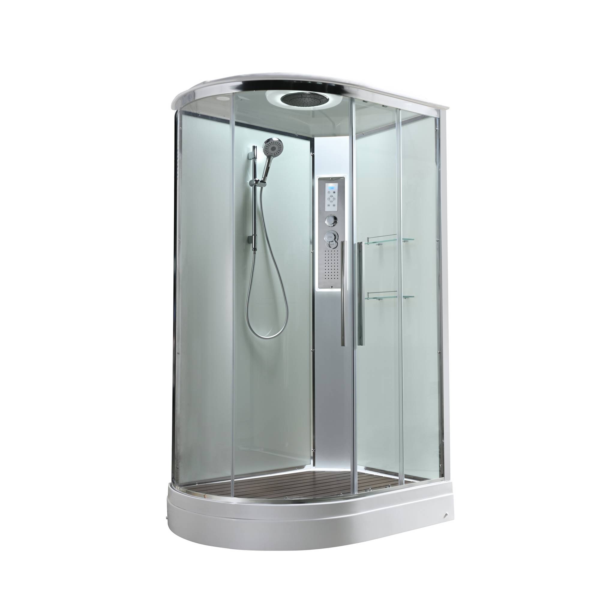 Стильная душевая кабина AvaCan EM2811RLEDT сочетает в себе высокую функциональность, практичность и надежность. При изготовлении применяется безопасное закаленное стекло толщиной 5 мм (прозрачное), надежно фиксируемое алюминиевым профилем. Сборка без силикона (увеличивает срок службы), внутренняя сборка(облегчает установку и ревизию; позволяет установить в ограниченном пространстве), смеситель резьбовой (без хомутов). Съемный экран поддона (позволяет осуществлять ревизию сифона). Цвет профиля хром. Двойные металлические ролики дверей (увеличивают срок службы).В комплекте : душевая штанга, две полочки , тропический (верхний) душ, арома-лейка с витамином С (картридж съемный),полимерная вставка в поддон(имитация дерева),сифон, ручки дверей из нержавейки , двойные ролики ,пульт сенсорный(Блютуз ,LED подсветка ,радио ,вытяжка),гидромассаж спины.