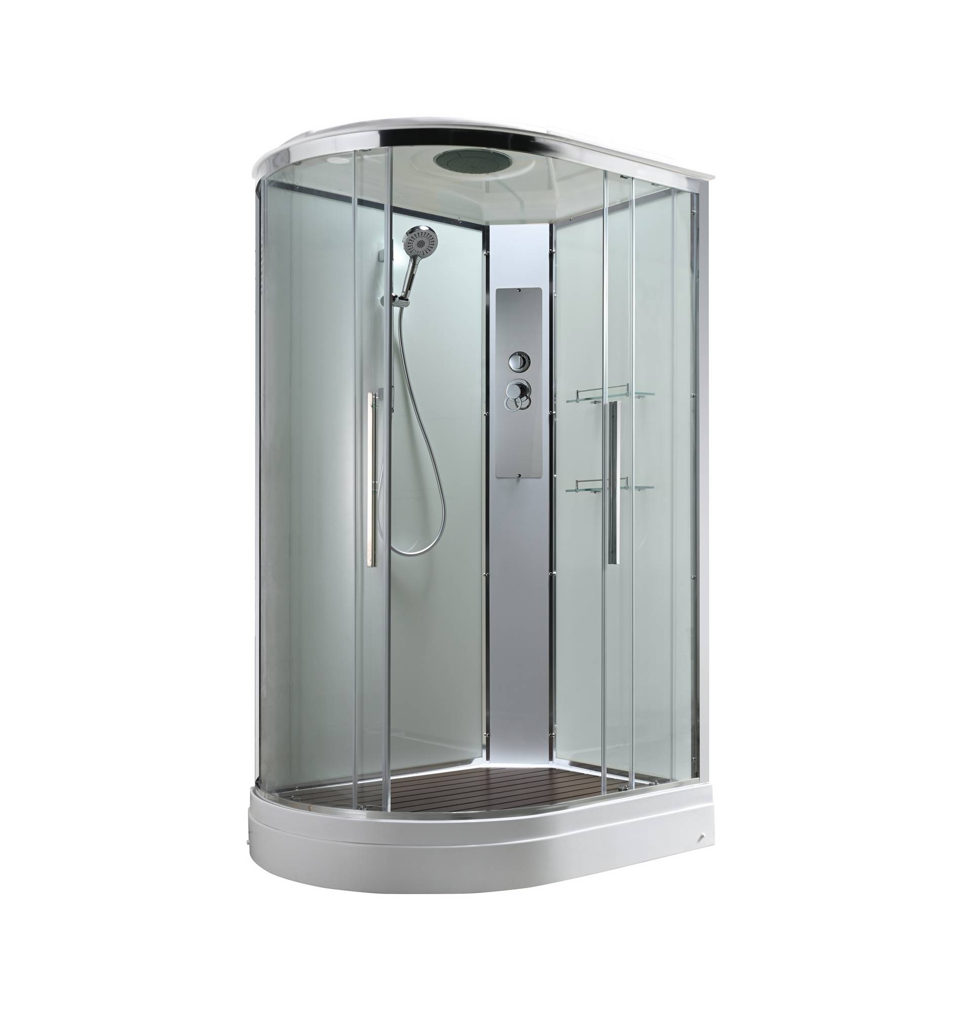 Стильная душевая кабина AvaCan EM2912RT сочетает в себе высокую функциональность, практичность и надежность. При изготовлении применяется безопасное закаленное стекло толщиной 5 мм (прозрачное), надежно фиксируемое алюминиевым профилем. Сборка без силикона (увеличивает срок службы), внутренняя сборка(облегчает установку и ревизию; позволяет установить в ограниченном пространстве), смеситель резьбовой (без хомутов). Съемный экран поддона (позволяет осуществлять ревизию сифона). Цвет профиля хром. Двойные металлические ролики дверей (увеличивают срок службы).В комплекте : душевая штанга, две полочки , тропический (верхний) душ, арома-лейка с витамином С (картридж съемный),полимерная вставка в поддон(имитация дерева),сифон, ручки дверей из нержавейки , двойные ролики .