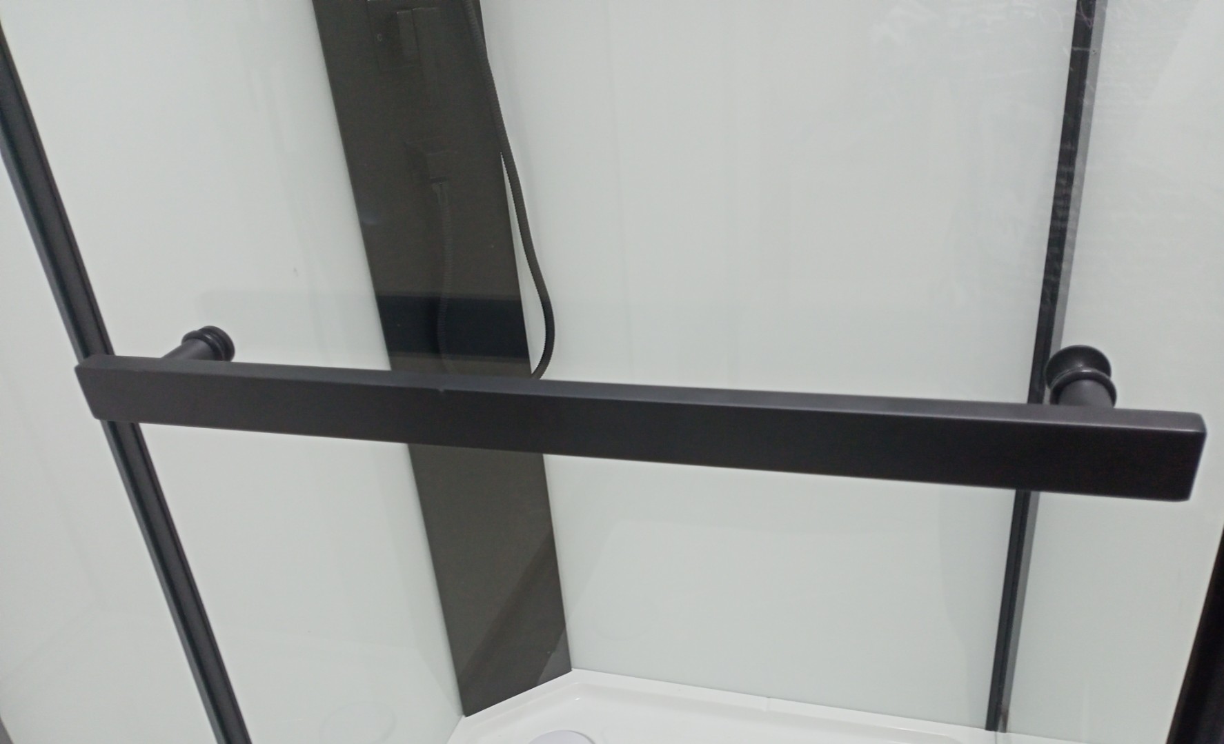 - Черный металлический верхний душ с регулировкой высоты (до установки)