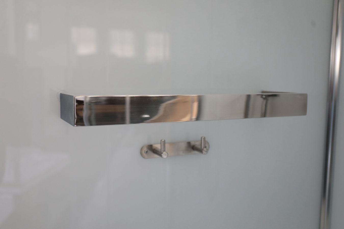 - Стеклянная полочка (45 см) с металлическим обрамлением.