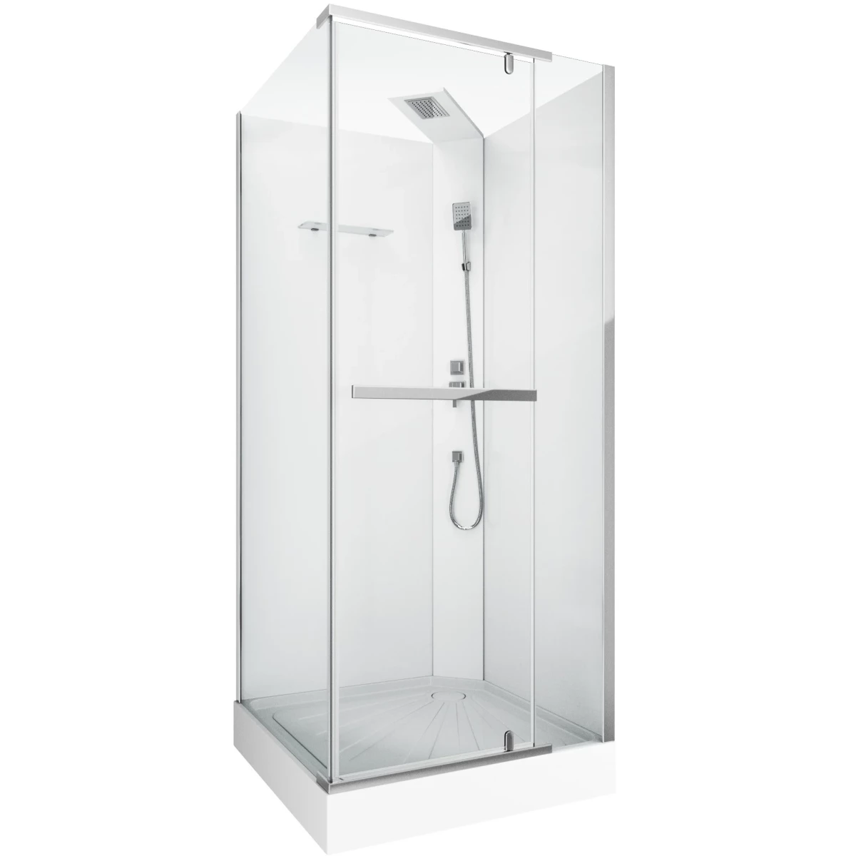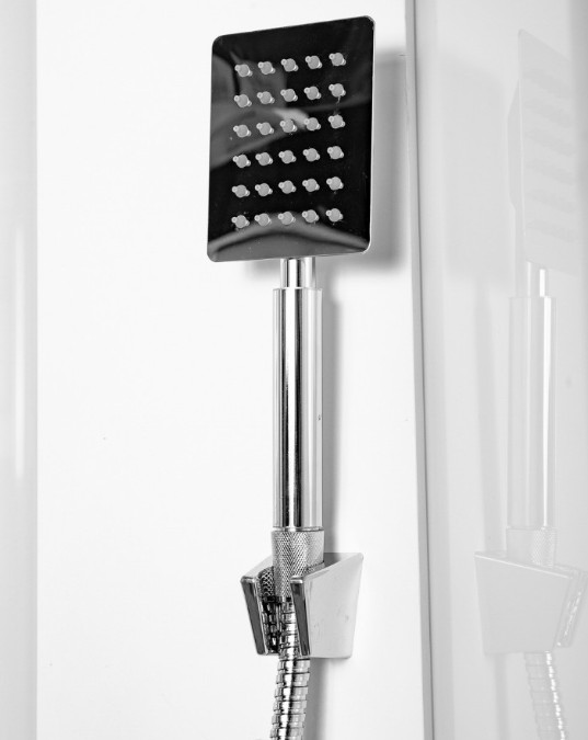 Изящная душевая кабина с верхним и ручным душем. Дверь распашная, стекло 6мм. Универсальная сборка (дверь можно установить как слева, так и справа).