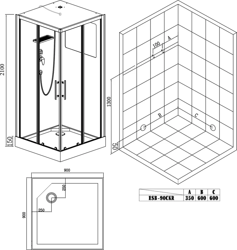 1. Поддон из ЧЁРНОГО акрила с бортиками по периметру - для безсиликоновой сборки.