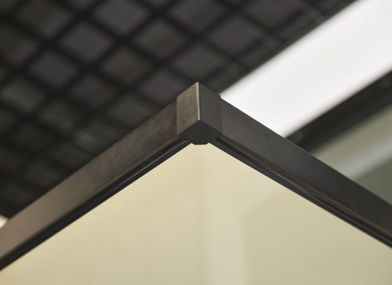 2. Задние стенки: "стекло БЕЛОЕ крашеное с интегрированным зеркалом и стекло ДЕКОРИРОВАННОЕ", с профилями для "замковой" фиксации.