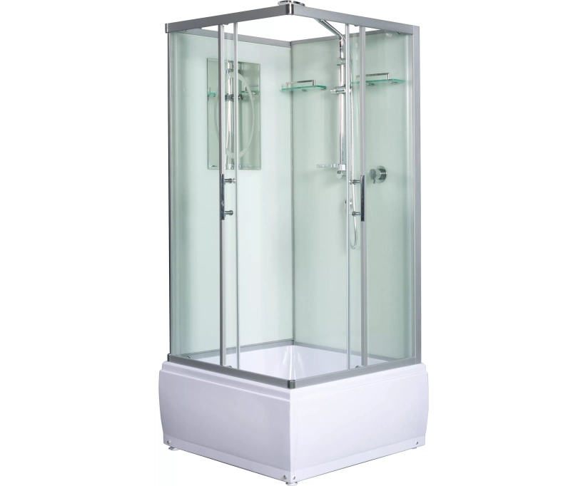Высота кабин 2170 мм. Внутренняя высота кабин 2000 мм. Все кабины имеют широкий вход.Стекло 5 мм. Переднее - закаленное безопасное прозрачное. Стекло заднее - закаленное безопасное белое крашенное. Профиль анодированный алюминий. Матовый хром. Фурнитура вся металл хром. Смеситель латунный с резьбовыми выходами. Ручка смесителя металлическая хром. Смеситель Термостат (модели 3 и 4 модификации). Фиксация оптимальной температуры принятия душа.Сенсорный пульт с функциями радио и Bluetooth.LED верхний свет. Вентиляция. Верхний тропический душ с системой Easy Clean. Нержавеющая сталь S304. Улучшенный ручной душ 3-позиционный. Ручной душ регулируется на штанге по высоте.Штанга 2 в 1. Ручной и верхний душ на одной штанге для моделей без крыши. Штанга с мыльницей. Шланг усиленный хромированный с системой ANTI-TWIST (вращение шланга на 360?).Длина шланга 1500-1900 мм. Шланг растягивается. Латунные наконечники на шланге.Полочки стекло 8 мм 1-2 шт*. С металлическим ограничителем цвет хром. Полочки удобны для душевых принадлежностей. Зеркало с фацетом и декоративной рамкой. Две большие регулируемые г/м форсунки (модели 4 модификации) Ручки металл хром из нержавеющей стали. Хромированные кнопочные двойные верхние металлические ролики с регулировкой. Нижние саморегулируемые ролики в защитных антикоррозийных пластиковых оболочках (цвет хром). На стеклах для раздвижных дверей магнитные уплотнители. Водонепроницаемые алюминиевые уплотнители на неподвижных стеклах. Силиконовые водонепроницаемые уплотнители на краях дверей. Резьбовое соединение всех задних шлангов. На всех кабинах с крышей и с пультом можно установить парогенератор + озонатор (опция). Возможность использовать Стул WW DH как опцию. В кабинах с высоким поддоном сиденье встроенное.Акриловый поддон с сифоном. Экран съемный.В поддоне антискользящее специальное покрытие.Сифон с гидрозатвором(«водяным замком»). Клапан сифона металл. Сетка для улавливания волос. Гофротруба (выход 40/50). Ножки поддона регулируются по высоте. Каркас поддона из качественной оцинкованной стали.* В зависимости от модели.