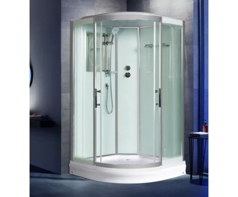 WeltWasser EMMER 12015 – качественная душевая кабина с богатым функционалом, привлекающая простотой в эксплуатации. Конструкция оснащена универсальной дверью, которая после установки раздвигается влево и вправо. Передние и боковые стенки кабины выполнены из надёжного и прочного закаленного стекла толщиной 6 миллиметров. Ему не страшны перепады температур, случайные удары. Задняя стенка изготавливается из идентичного стекла, но окрашивается в белую цветовую гамму. В зависимости от собственных предпочтений, человек может пользоваться ручным душем, выбирая наиболее оптимальное для себя положение, либо верхним. Монтаж кабины осуществляется без силикона. Внутри конструкции свободно помещается высокий человек, ведь её внутренняя высота составляет два метра.