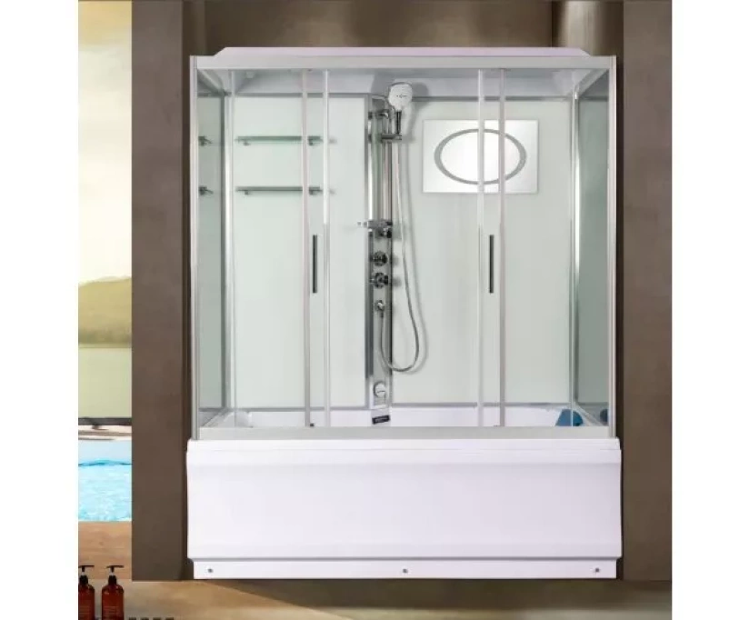 WeltWasser EMMER 150/85/55 – качественная душевая кабина с богатым функционалом, привлекающая простотой в эксплуатации. Конструкция оснащена универсальной дверью, которая после установки раздвигается влево и вправо. Передние и боковые стенки кабины выполнены из надёжного и прочного закаленного стекла толщиной 6 миллиметров. Ему не страшны перепады температур, случайные удары. Задняя стенка изготавливается из идентичного стекла, но окрашивается в белую цветовую гамму. В зависимости от собственных предпочтений, человек может пользоваться ручным душем, выбирая наиболее оптимальное для себя положение, либо верхним. Монтаж кабины осуществляется без силикона. Внутри конструкции свободно помещается высокий человек, ведь её внутренняя высота составляет два метра.
