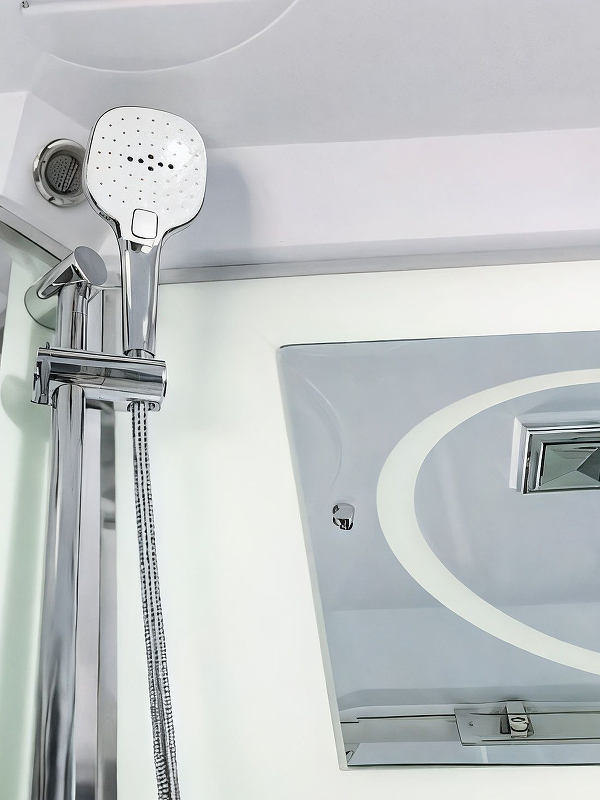 WeltWasser EMMER 170/85/55 – качественная душевая кабина с богатым функционалом, привлекающая простотой в эксплуатации. Конструкция оснащена универсальной дверью, которая после установки раздвигается влево и вправо. Передние и боковые стенки кабины выполнены из надёжного и прочного закаленного стекла толщиной 6 миллиметров. Ему не страшны перепады температур, случайные удары. Задняя стенка изготавливается из идентичного стекла, но окрашивается в белую цветовую гамму. В зависимости от собственных предпочтений, человек может пользоваться ручным душем, выбирая наиболее оптимальное для себя положение, либо верхним. Верхний LED свет создает приятное освещение внутри кабины. Сенсорный пульт оснащен функцией bluetooth и вы можете наслаждаться любимой музыкой с телефона. Смеситель Две регулируемые гидромассажные форсунки сделают приятный массаж. Сиденье из дуба с влагонепроницаемой пропиткой прилагается к поддону и можно воспользоваться им для принятия приятных процедур. Монтаж кабины осуществляется без силикона. Внутри конструкции свободно помещается высокий человек, ведь её внутренняя высота составляет два метра.