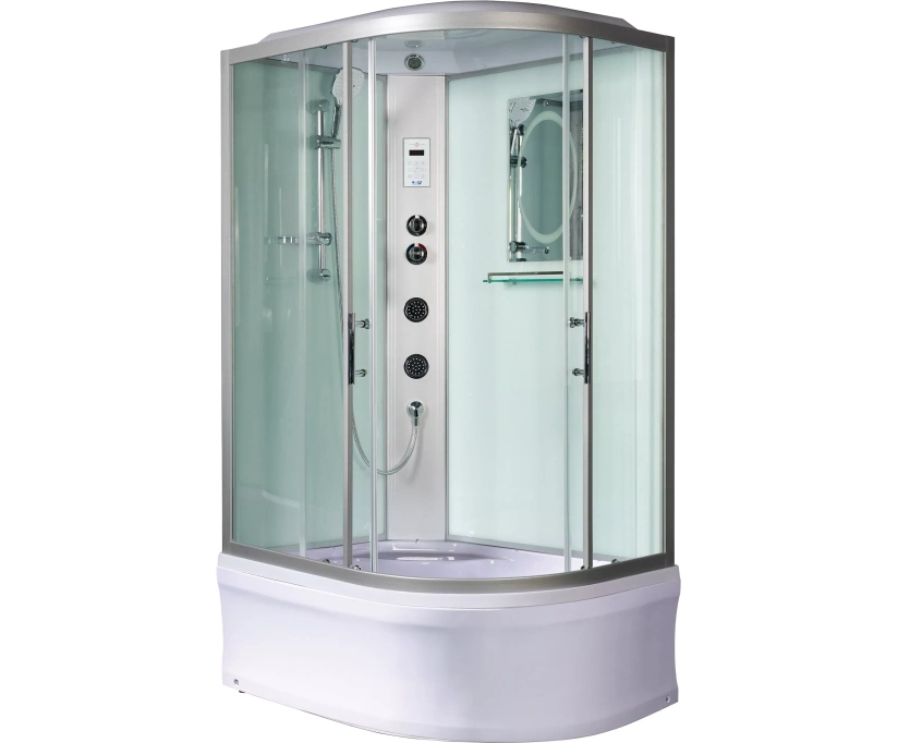 Высота кабин 2170 мм.Внутренняя высота кабин 2000 мм.Все кабины имеют широкий вход.Стекло 5 мм. Переднее - закаленное безопасное прозрачное. Стекло заднее - закаленное безопасное белое крашенное.Профиль анодированный алюминий. Матовый хром.Фурнитура вся металл хром.Смеситель латунный с резьбовыми выходами. Ручка смесителя металлическая хром.Смеситель Термостат (модели 3 и 4 модификации). Фиксация оптимальной температуры принятия душа.Сенсорный пульт с функциями радио и Bluetooth.LED верхний свет.ВентиляцияВерхний тропический душ с системой Easy Clean. Нержавеющая сталь S304.Улучшенный ручной душ 3-позиционный.Ручной душ регулируется на штанге по высоте.Штанга 2 в 1. Ручной и верхний душ на одной штанге для моделей без крыши.Штанга с мыльницей.Шланг усиленный хромированный с системой ANTI-TWIST (вращение шланга на 360?).Длина шланга 1500-1900 мм. Шланг растягивается. Латунные наконечники на шланге.Полочки стекло 8 мм 1-2 шт*. С металлическим ограничителем цвет хром. Полочки удобны для душевых принадлежностей.Зеркало с фацетом и декоративной рамкой.Две большие регулируемые г/м форсунки (модели 4 модификации)Ручки металл хром из нержавеющей стали.Хромированные кнопочные двойные верхние металлические ролики с регулировкой. Нижние саморегулируемые ролики в защитных антикоррозийных пластиковых оболочках (цвет хром).На стеклах для раздвижных дверей магнитные уплотнители.Водонепроницаемые алюминиевые уплотнители на неподвижных стеклах.Силиконовые водонепроницаемые уплотнители на краях дверей.Резьбовое соединение всех задних шлангов.На всех кабинах с крышей и с пультом можно установить парогенератор + озонатор (опция).Возможность использовать Стул WW DH как опцию.В кабинах с высоким поддоном сиденье встроенное.Акриловый поддон с сифоном. Экран съемный.В поддоне антискользящее специальное покрытие.Сифон с гидрозатвором(«водяным замком»). Клапан сифона металл. Сетка для улавливания волос. Гофротруба (выход 40/50).Ножки поддона регулируются по высоте.Каркас поддона из качественной оцинкованной стали.*В зависимости от модели.