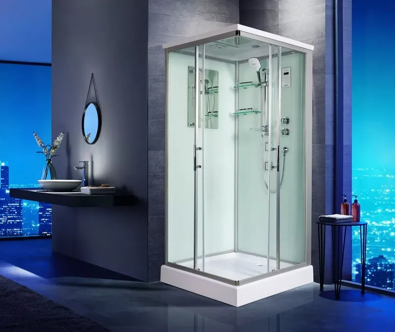 WeltWasser LAINE 1004 – качественная душевая кабина с богатым функционалом, привлекающая простотой в эксплуатации. Конструкция оснащена универсальной дверью, которая после установки раздвигается влево и вправо. Передние и боковые стенки кабины выполнены из надёжного и прочного закаленного стекла толщиной 5 миллиметров. Ему не страшны перепады температур, случайные удары. Задняя стенка изготавливается из идентичного стекла, но окрашивается в белую цветовую гамму. В зависимости от собственных предпочтений, человек может пользоваться ручным душем, выбирая наиболее оптимальное для себя положение, либо верхним. Верхний LED свет создает приятное освещение внутри кабины. Сенсорный пульт оснащен функцией bluetooth и вы можете наслаждаться любимой музыкой с телефона. Смеситель Две регулируемые гидромассажные форсунки сделают приятный массаж. Монтаж кабины осуществляется без силикона. Внутри конструкции свободно помещается высокий человек, ведь её внутренняя высота составляет два метра.