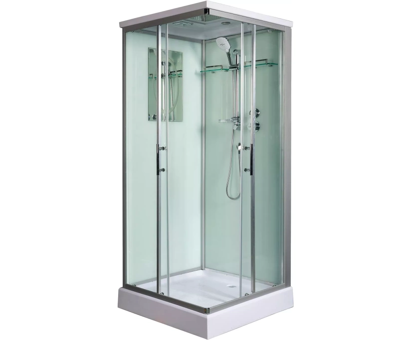WeltWasser LAINE 802 – качественная душевая кабина с богатым функционалом, привлекающая простотой в эксплуатации. Конструкция оснащена универсальной дверью, которая после установки раздвигается влево и вправо. Передние и боковые стенки кабины выполнены из надёжного и прочного закаленного стекла толщиной 5 миллиметров. Ему не страшны перепады температур, случайные удары. Задняя стенка изготавливается из идентичного стекла, но окрашивается в белую цветовую гамму. В зависимости от собственных предпочтений, человек может пользоваться ручным душем, выбирая наиболее оптимальное для себя положение, либо верхним. Монтаж кабины осуществляется без силикона. Внутри конструкции свободно помещается высокий человек, ведь её внутренняя высота составляет два метра.