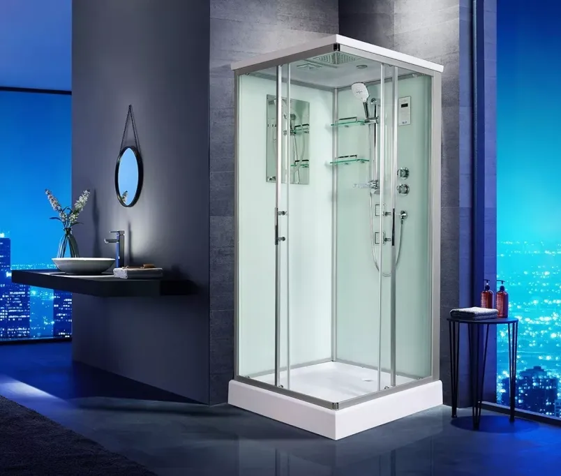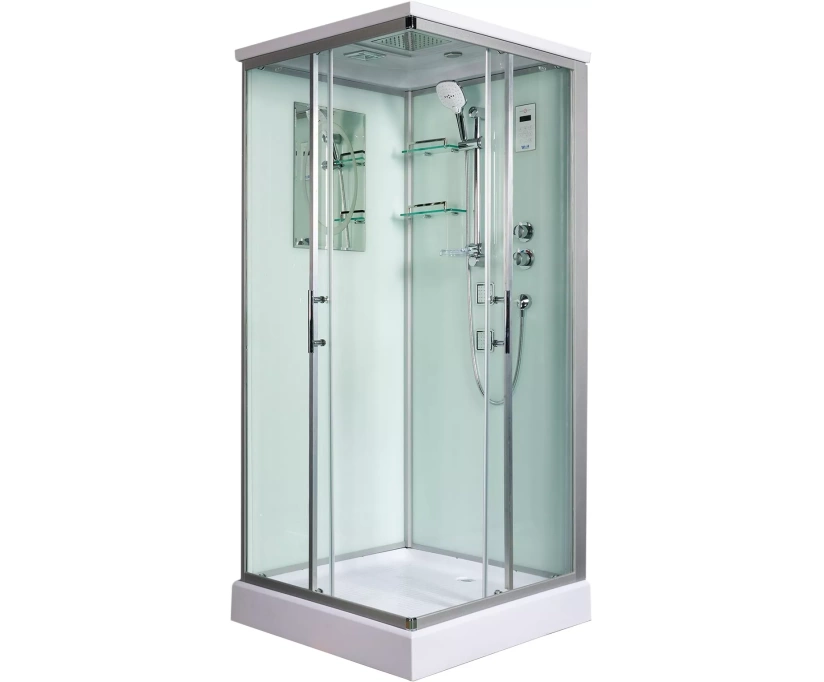 WeltWasser LAINE 904 – качественная душевая кабина с богатым функционалом, привлекающая простотой в эксплуатации. Конструкция оснащена универсальной дверью, которая после установки раздвигается влево и вправо. Передние и боковые стенки кабины выполнены из надёжного и прочного закаленного стекла толщиной 5 миллиметров. Ему не страшны перепады температур, случайные удары. Задняя стенка изготавливается из идентичного стекла, но окрашивается в белую цветовую гамму. В зависимости от собственных предпочтений, человек может пользоваться ручным душем, выбирая наиболее оптимальное для себя положение, либо верхним. Верхний LED свет создает приятное освещение внутри кабины. Сенсорный пульт оснащен функцией bluetooth и вы можете наслаждаться любимой музыкой с телефона. Смеситель Термостат поможет выбрать и зафиксировать оптимальную температуру для принятия душа. Две регулируемые гидромассажные форсунки сделают приятный массаж. Монтаж кабины осуществляется без силикона. Внутри конструкции свободно помещается высокий человек, ведь её внутренняя высота составляет два метра.