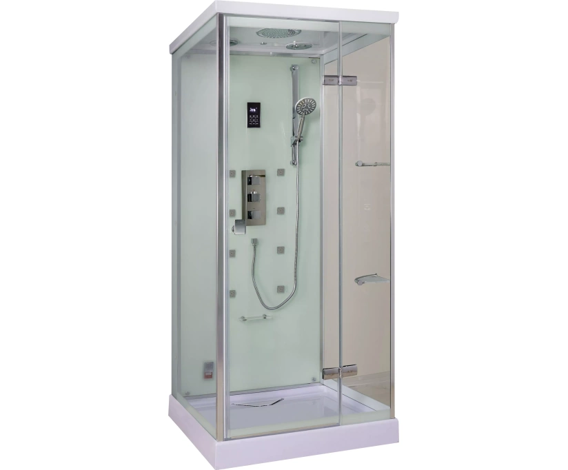 Weltwasser MAINE L/R – качественная душевая кабина с богатым функционалом, привлекающая простотой в эксплуатации. Конструкция оснащена универсальной дверью, которая после установки может открываться влево или вправо. Передние и боковые стенки кабины выполнены из надёжного и прочного стекла толщиной 8 миллиметров. Ему не страшны перепады температур, случайные удары. Задняя стенка изготавливается из идентичного стекла, но окрашивается в белую цветовую гамму. При желании, заднюю стенку можно открыть и добраться до коммуникаций. В зависимости от собственных предпочтений, человек может пользоваться ручным душем, выбирая наиболее оптимальное для себя положение, либо верхним. Помимо этого, в кабине функционируют гидромассажные форсунки. Монтаж кабины осуществляется без силикона. Внутри конструкции свободно помещается высокий человек, ведь её внутренняя высота составляет два метра.
