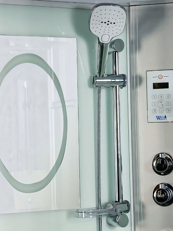 WeltWasser NESSE 1004 – качественная душевая кабина с богатым функционалом, привлекающая простотой в эксплуатации. Конструкция оснащена универсальной дверью, которая после установки раздвигается влево и вправо. Передние и боковые стенки кабины выполнены из надёжного и прочного закаленного стекла толщиной 5 миллиметров. Ему не страшны перепады температур, случайные удары. Задняя стенка изготавливается из идентичного стекла, но окрашивается в белую цветовую гамму. В зависимости от собственных предпочтений, человек может пользоваться ручным душем, выбирая наиболее оптимальное для себя положение, либо верхним. Верхний LED свет создает приятное освещение внутри кабины. Сенсорный пульт оснащен функцией bluetooth и вы можете наслаждаться любимой музыкой с телефона. Смеситель Термостат поможет выбрать и зафиксировать оптимальную температуру для принятия душа. Две регулируемые гидромассажные форсунки сделают приятный массаж. Монтаж кабины осуществляется без силикона. Внутри конструкции свободно помещается высокий человек, ведь её внутренняя высота составляет два метра.