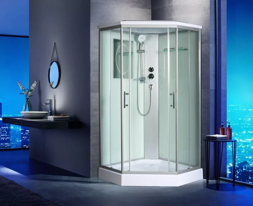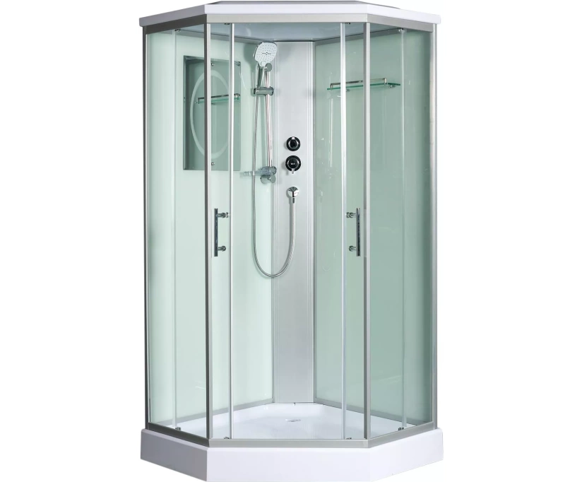 WeltWasser NESSE 902 – качественная душевая кабина с богатым функционалом, привлекающая простотой в эксплуатации. Конструкция оснащена универсальной дверью, которая после установки раздвигается влево и вправо. Передние и боковые стенки кабины выполнены из надёжного и прочного закаленного стекла толщиной 5 миллиметров. Ему не страшны перепады температур, случайные удары. Задняя стенка изготавливается из идентичного стекла, но окрашивается в белую цветовую гамму. В зависимости от собственных предпочтений, человек может пользоваться ручным душем, выбирая наиболее оптимальное для себя положение, либо верхним. Монтаж кабины осуществляется без силикона. Внутри конструкции свободно помещается высокий человек, ведь её внутренняя высота составляет два метра.