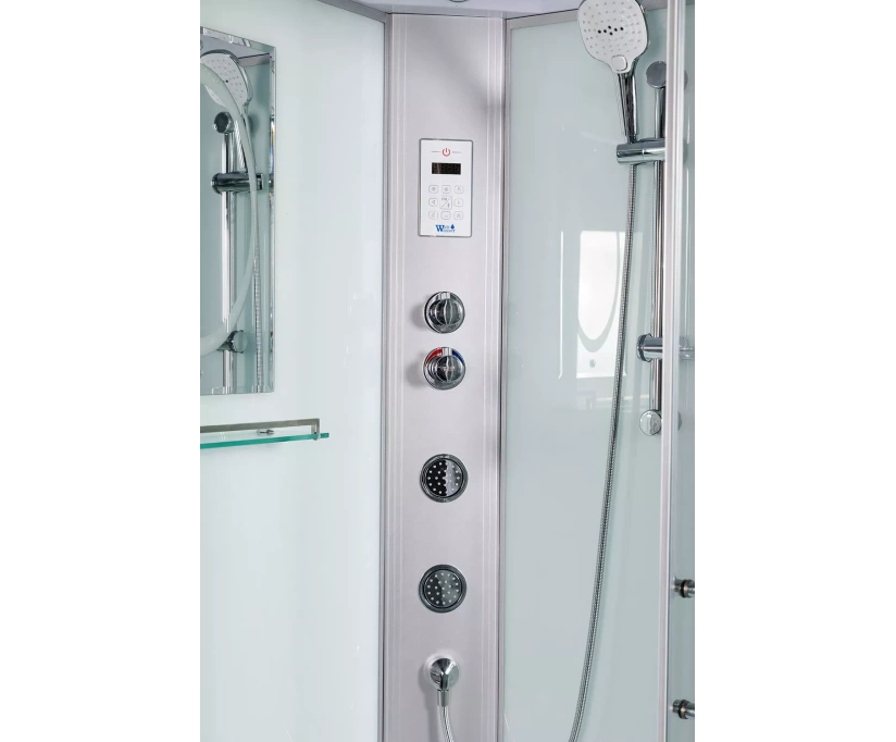 WeltWasser WERRA 1204 – качественная душевая кабина с богатым функционалом, привлекающая простотой в эксплуатации. Конструкция оснащена универсальной дверью, которая после установки раздвигается влево и вправо. Передние и боковые стенки кабины выполнены из надёжного и прочного закаленного стекла толщиной 5 миллиметров. Ему не страшны перепады температур, случайные удары. Задняя стенка изготавливается из идентичного стекла, но окрашивается в белую цветовую гамму. В зависимости от собственных предпочтений, человек может пользоваться ручным душем, выбирая наиболее оптимальное для себя положение, либо верхним. Верхний LED свет создает приятное освещение внутри кабины. Сенсорный пульт оснащен функцией bluetooth и вы можете наслаждаться любимой музыкой с телефона. Смеситель Две регулируемые гидромассажные форсунки сделают приятный массаж. Монтаж кабины осуществляется без силикона. Внутри конструкции свободно помещается высокий человек, ведь её внутренняя высота составляет два метра.