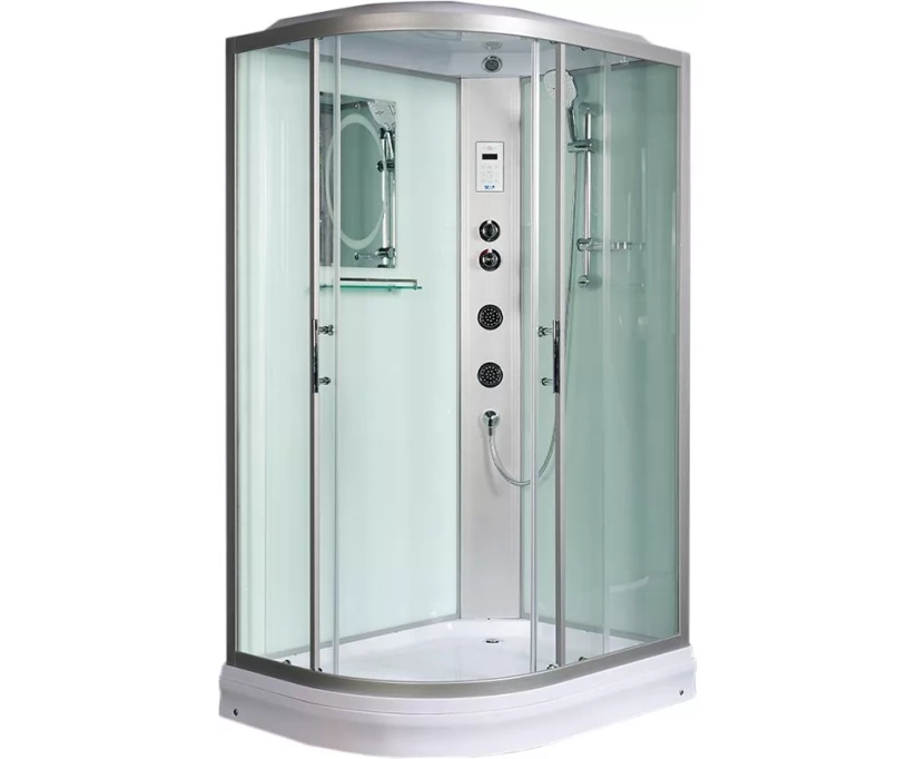Высота кабин 2170 мм.Внутренняя высота кабин 2000 мм.Все кабины имеют широкий вход.Стекло 5 мм. Переднее - закаленное безопасное прозрачное. Стекло заднее - закаленное безопасное белое крашенное.Профиль анодированный алюминий. Матовый хром.Фурнитура вся металл хром.Смеситель латунный с резьбовыми выходами. Ручка смесителя металлическая хром.Смеситель Термостат (модели 3 и 4 модификации). Фиксация оптимальной температуры принятия душа.Сенсорный пульт с функциями радио и Bluetooth.LED верхний свет.ВентиляцияВерхний тропический душ с системой Easy Clean. Нержавеющая сталь S304.Улучшенный ручной душ 3-позиционный.Ручной душ регулируется на штанге по высоте.Штанга 2 в 1. Ручной и верхний душ на одной штанге для моделей без крыши.Штанга с мыльницей.Шланг усиленный хромированный с системой ANTI-TWIST (вращение шланга на 360?).Длина шланга 1500-1900 мм. Шланг растягивается. Латунные наконечники на шланге.Полочки стекло 8 мм 1-2 шт*. С металлическим ограничителем цвет хром. Полочки удобны для душевых принадлежностей.Зеркало с фацетом и декоративной рамкой.Две большие регулируемые г/м форсунки (модели 4 модификации)Ручки металл хром из нержавеющей стали.Хромированные кнопочные двойные верхние металлические ролики с регулировкой. Нижние саморегулируемые ролики в защитных антикоррозийных пластиковых оболочках (цвет хром).На стеклах для раздвижных дверей магнитные уплотнители.Водонепроницаемые алюминиевые уплотнители на неподвижных стеклах.Силиконовые водонепроницаемые уплотнители на краях дверей.Резьбовое соединение всех задних шлангов.На всех кабинах с крышей и с пультом можно установить парогенератор + озонатор (опция).Возможность использовать Стул WW DH как опцию.В кабинах с высоким поддоном сиденье встроенное.Акриловый поддон с сифоном. Экран съемный.В поддоне антискользящее специальное покрытие.Сифон с гидрозатвором(«водяным замком»). Клапан сифона металл. Сетка для улавливания волос. Гофротруба (выход 40/50).Ножки поддона регулируются по высоте.Каркас поддона из качественной оцинкованной стали.*В зависимости от модели.