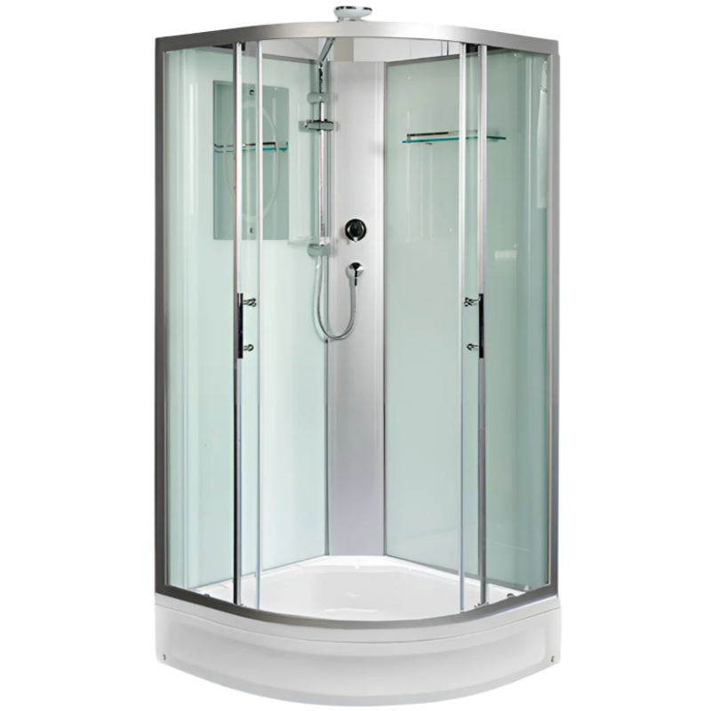 Душевая кабина WeltWasser Werra XL 1001 10000014048 100x100 хром/прозрачное. Количество створок двери: 2. Профиль: алюминиевый. Экран: съемный. Сифон: с гидрозатвором. Полочки: да. Зеркало: да. Динамики: да. Дисплей: нет. Верхний душ: нет. Подсветка “лунный свет”: нет. Ручной душ: да. Вентиляция: нет. Излив для ванной: нет. Электропитание: нет. Парогенератор: нет. Антискользящее покрытие поддона. Регулируемая высота ножек: да. Толщина стекла: 5 мм. Высота поддона: 24 см.