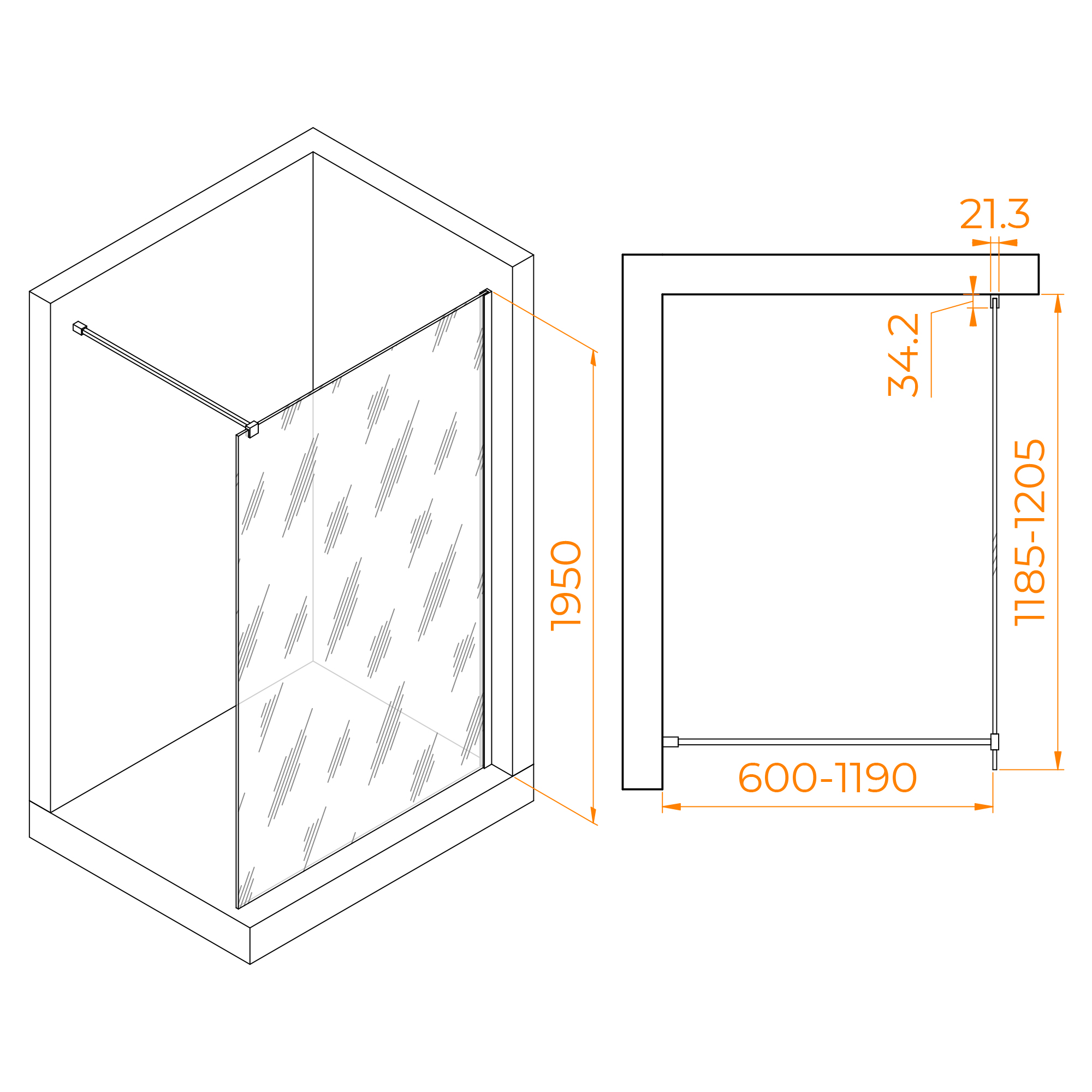 Перегородка изготовлена из закаленного стекла толщиной 10 мм, что обеспечивает надежность и долговечность изделия. Прозрачное стекло позволяет вам наслаждаться свежими ощущениями во время принятия душа, создавая визуальное пространство и эффект простора в ванной комнате. Благодаря анодированному алюминиевому профилю цвета хром, перегородка идеально сочетается со стилем вашей ванной комнаты и добавляет элегантность и современность в интерьер.