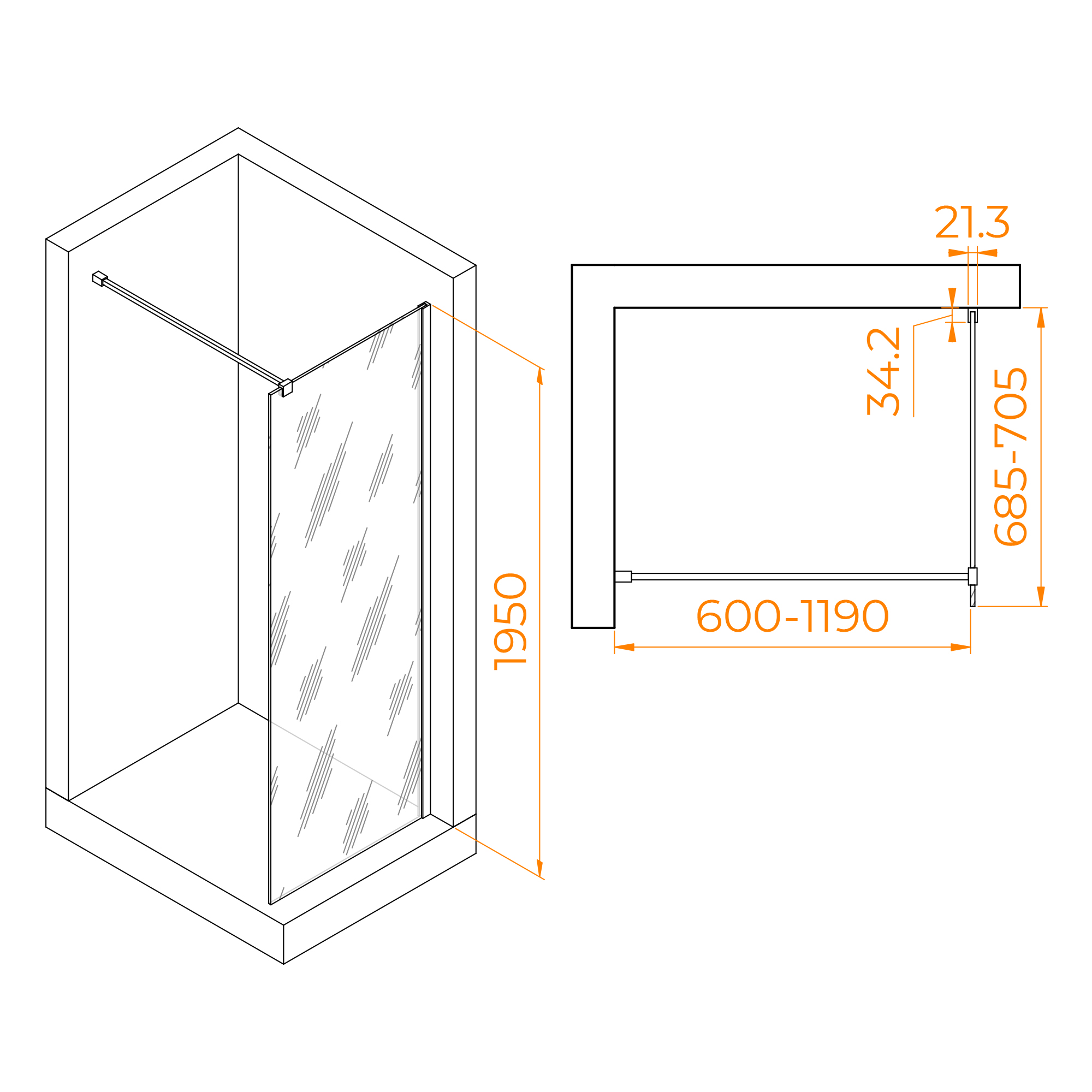 Перегородка изготовлена из закаленного стекла толщиной 10 мм, что обеспечивает надежность и долговечность изделия. Прозрачное стекло позволяет вам наслаждаться свежими ощущениями во время принятия душа, создавая визуальное пространство и эффект простора в ванной комнате. Благодаря анодированному алюминиевому профилю цвета хром, перегородка идеально сочетается со стилем вашей ванной комнаты и добавляет элегантность и современность в интерьер.