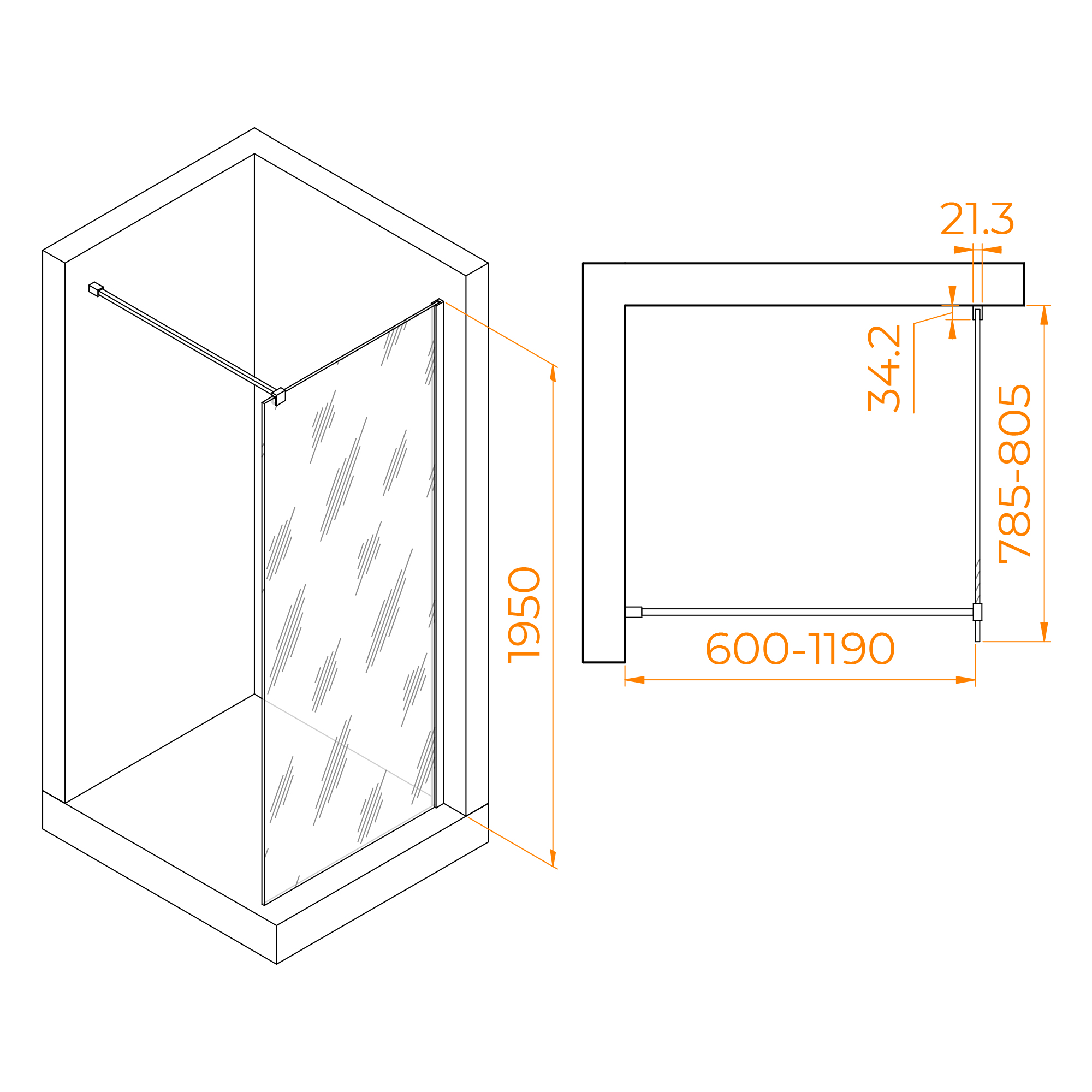 Перегородка изготовлена из закаленного стекла толщиной 10 мм, что обеспечивает надежность и долговечность изделия. Прозрачное стекло позволяет вам наслаждаться свежими ощущениями во время принятия душа, создавая визуальное пространство и эффект простора в ванной комнате. Благодаря анодированному алюминиевому профилю цвета хром, перегородка идеально сочетается со стилем вашей ванной комнаты и добавляет элегантность и современность в интерьер.