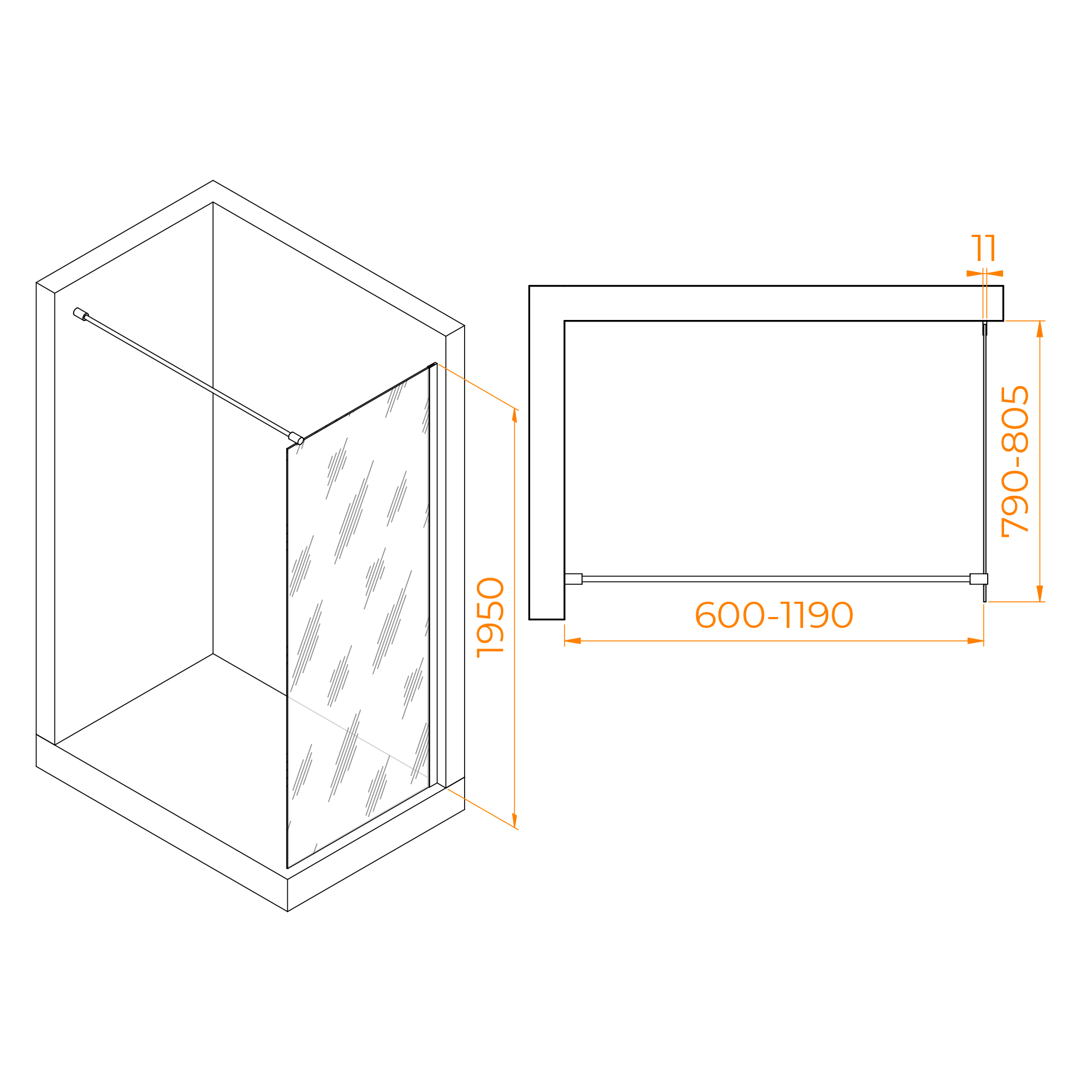 Высота перегородки составляет 195см, что обеспечивает достаточное пространство для комфортного использования душа. Конструкция имеет 3 класс герметичности, что обеспечивает защиту от протекания воды и сохраняет сухую и безопасную зону для душа.