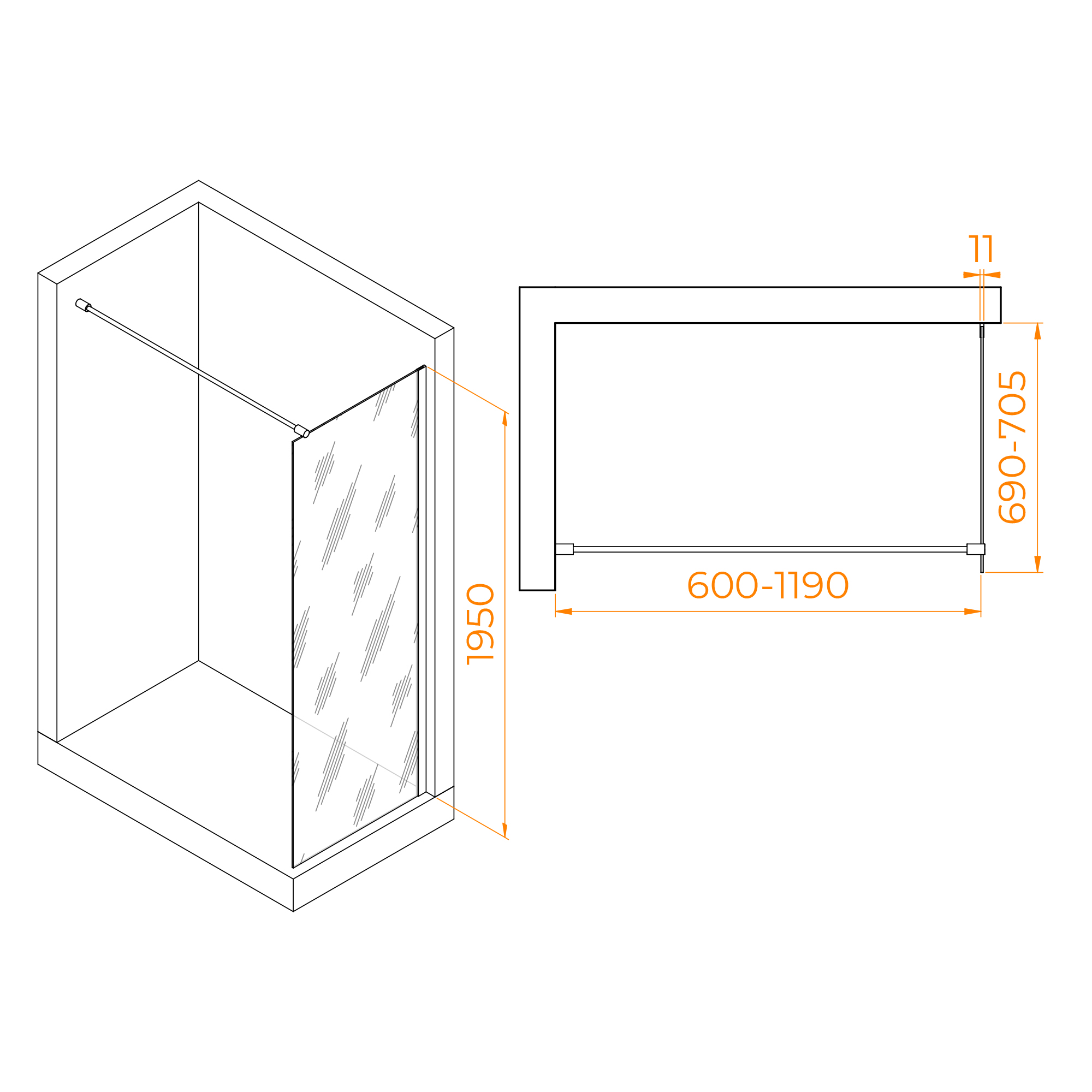 Высота перегородки составляет 195см, что обеспечивает достаточное пространство для комфортного использования душа. Конструкция имеет 3 класс герметичности, что обеспечивает защиту от протекания воды и сохраняет сухую и безопасную зону для душа.