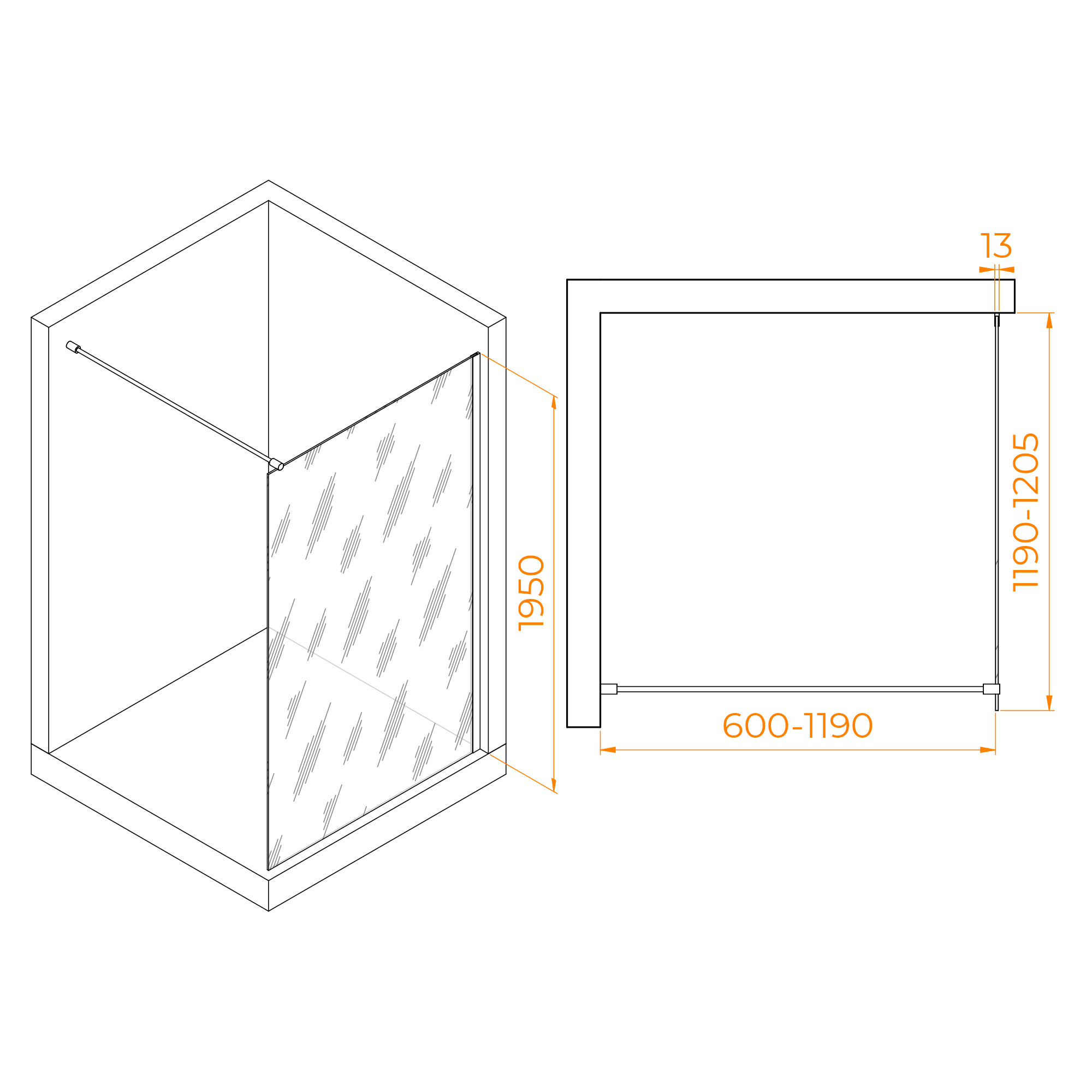 Высота перегородки для душа RGW WA-010 составляет 195 см, что обеспечивает комфортное использование для большинства людей и позволяет избежать протекания воды через край перегородки.