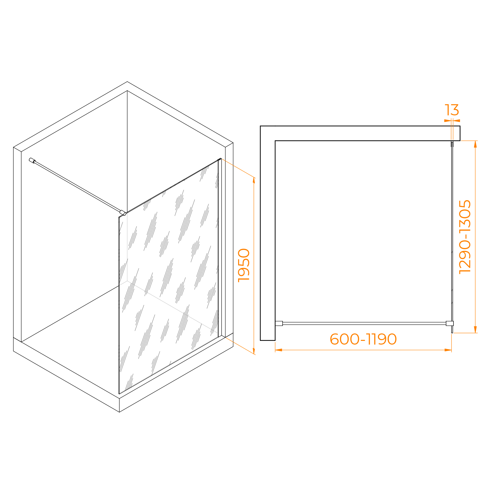Высота перегородки для душа RGW WA-010 составляет 195 см, что обеспечивает комфортное использование для большинства людей и позволяет избежать протекания воды через край перегородки.