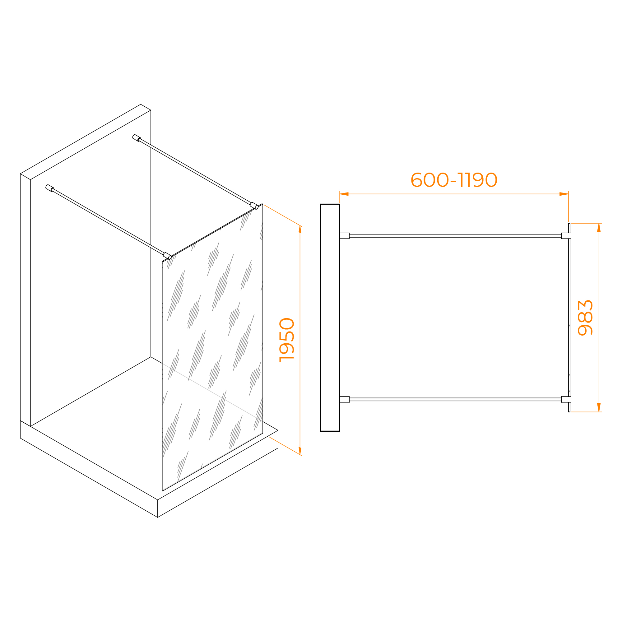 Душевая перегородка RGW WA-016 с высотой перегородки 195 см обеспечивает оптимальную конфиденциальность и комфорт. Большая высота позволяет вам наслаждаться освежающим душем, не беспокоясь о разбрызгивании воды. Более высокая перегородка также придает вашей ванной комнате ощущение величия, создавая атмосферу спа-салона.