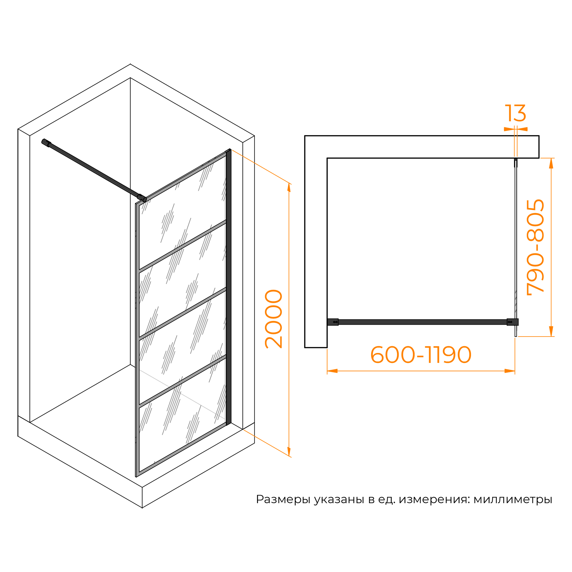 Душевая перегородка WA-019B — идеальное решение для создания стильного и функционального пространства в ванной комнате. С общей высотой 2000 мм, она надежно защищает от разбрызгивания воды за пределы душевой зоны.