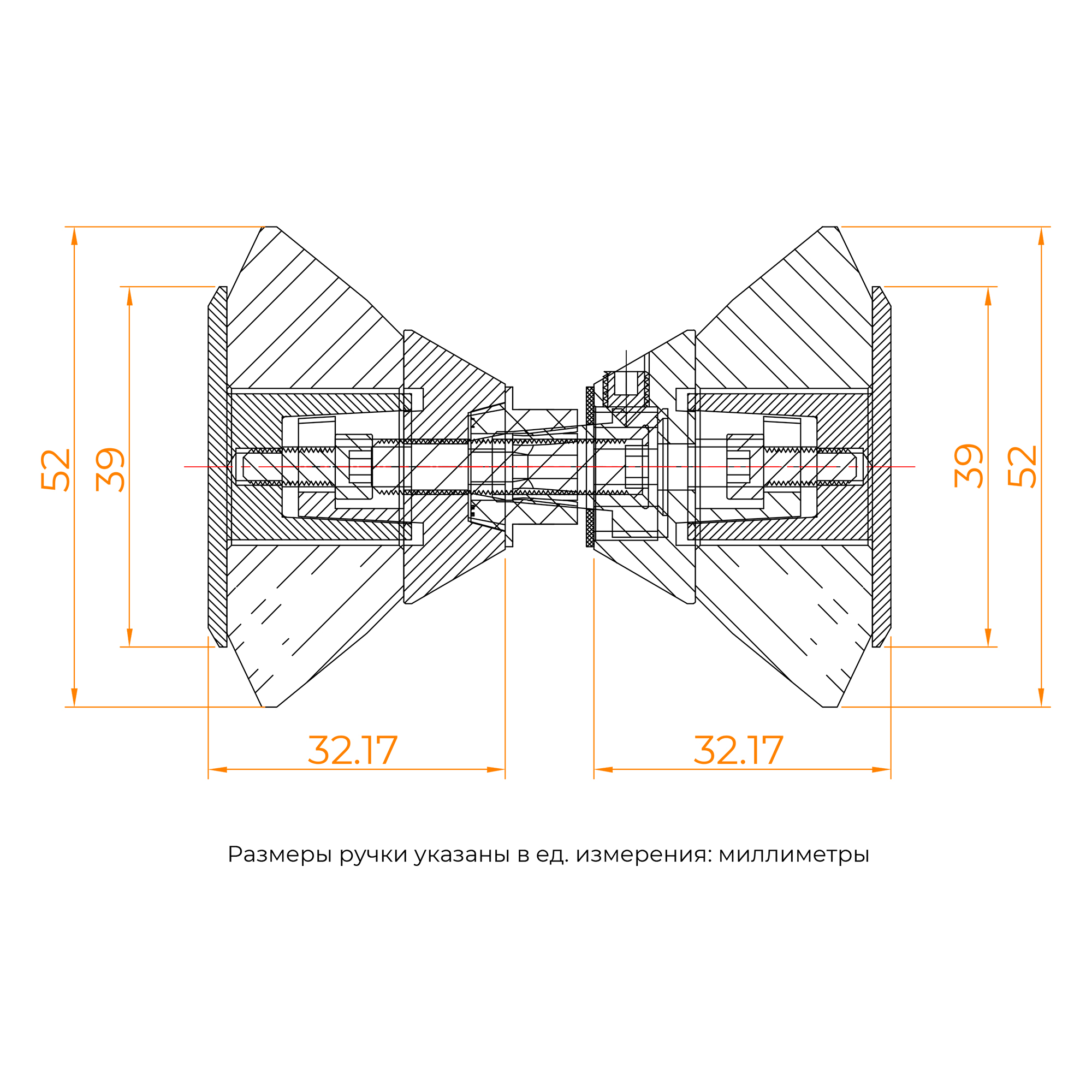 Комплектуется кристально-хрустальной премиальной двухсторонней ручкой размером 52х39 мм.