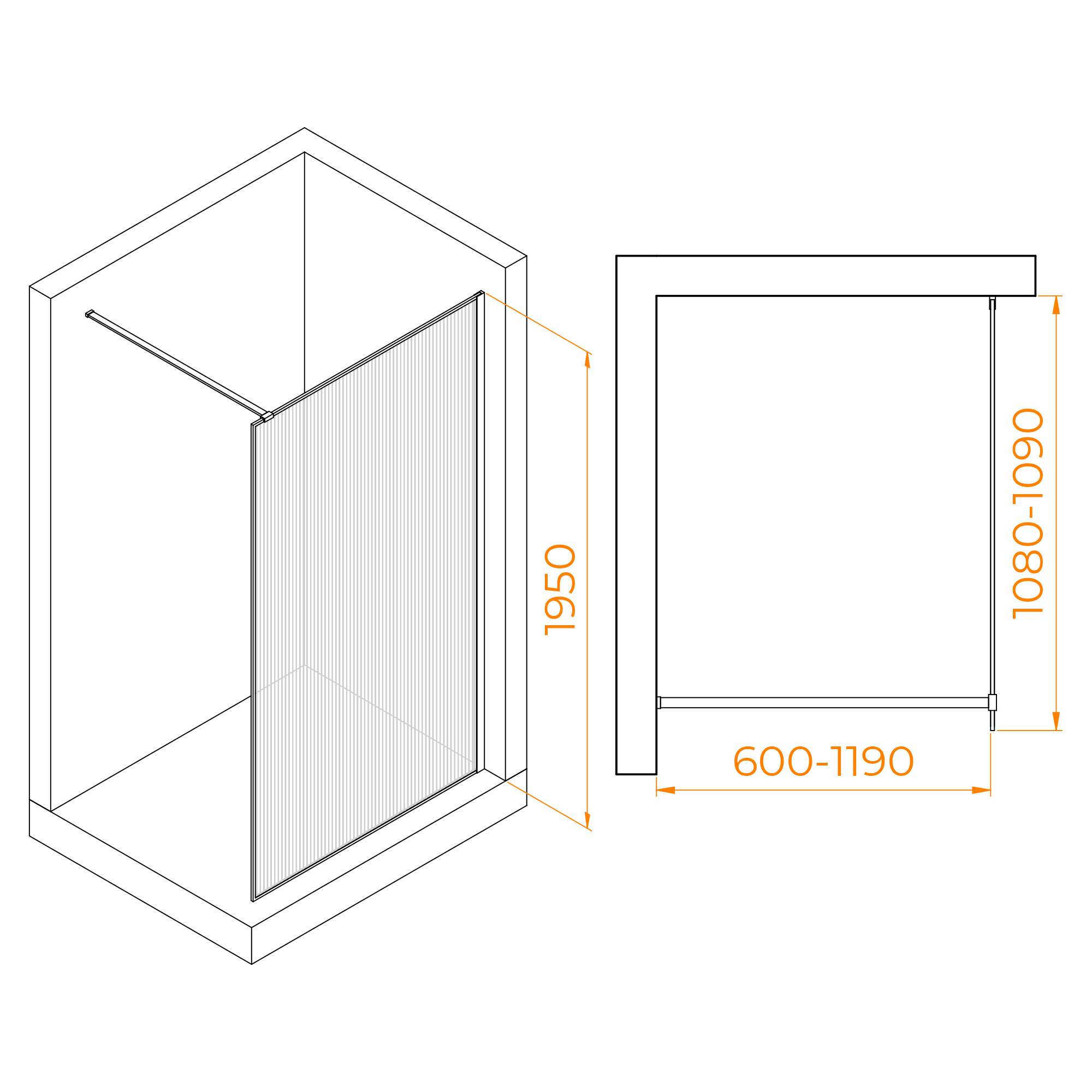 Высота: 1950 мм- Позволяет использовать душевую перегородку даже для людей высокого роста.