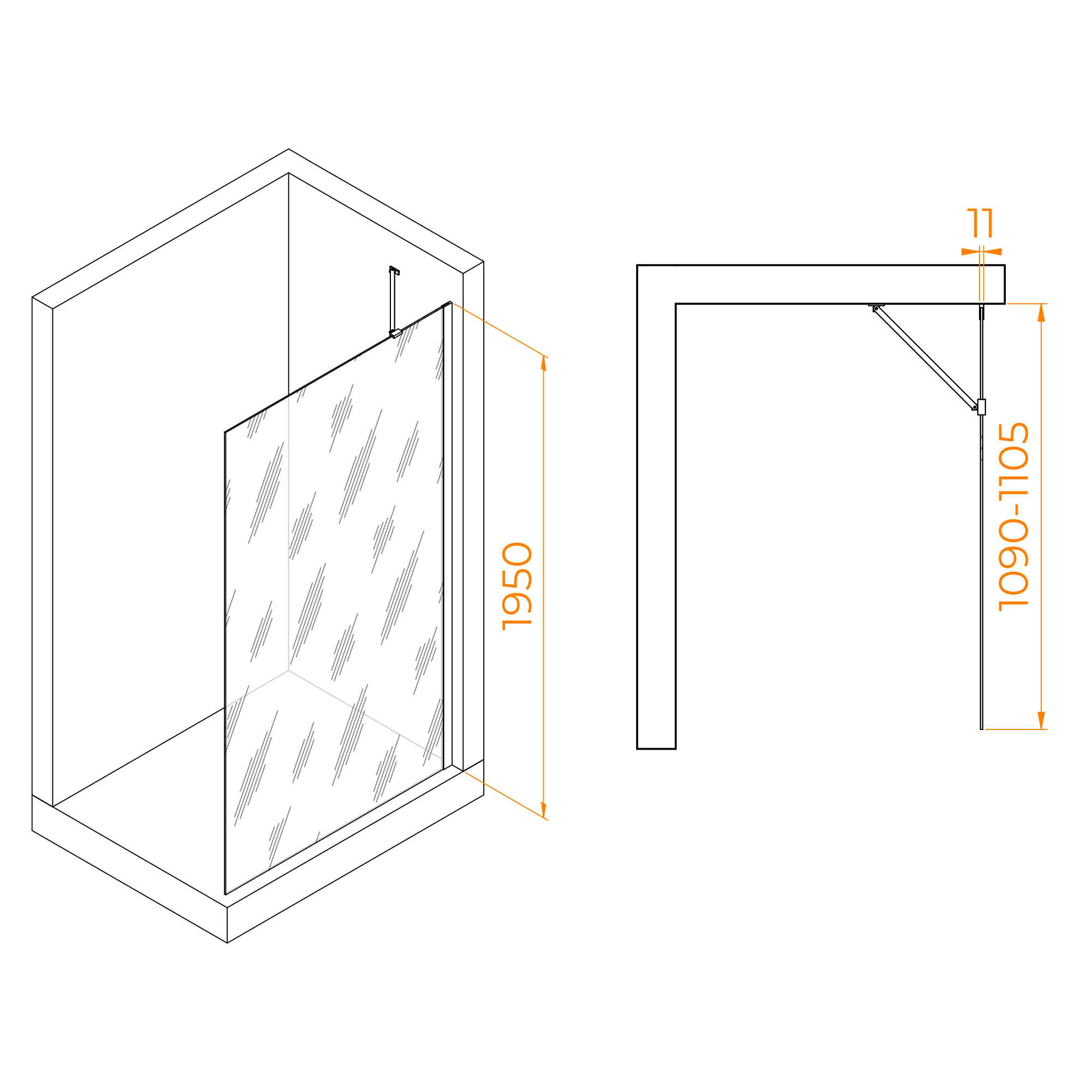 Высота перегородки составляет 195 см, что позволяет использовать данную конструкцию для большинства размеров ванной комнаты. Перегородка имеет класс герметичности 3, что обеспечивает полную защиту от проникновения воды.