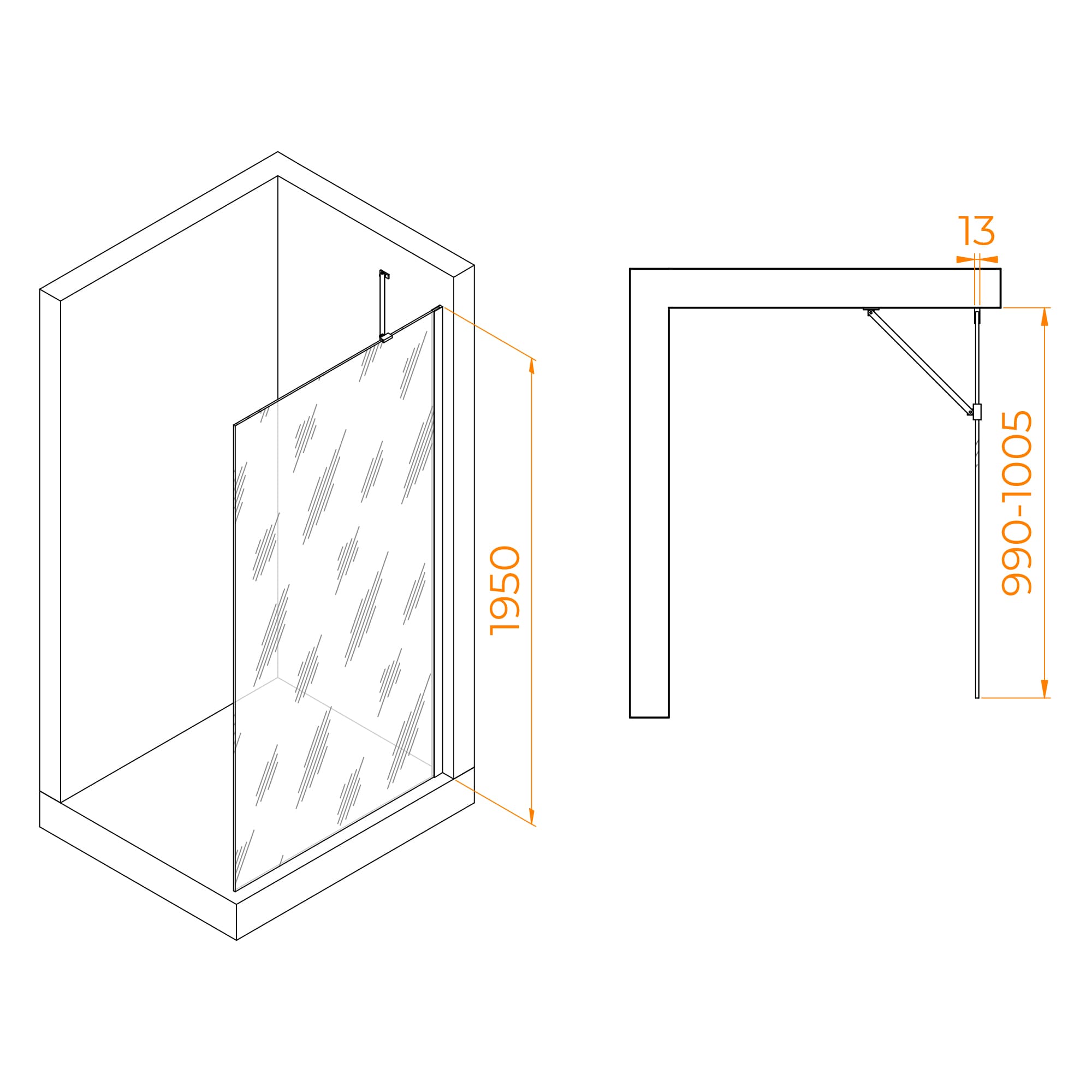 Высота перегородки составляет 195 см, что обеспечивает достаточное пространство для принятия душа как людям среднего роста, так и более высоким людям.