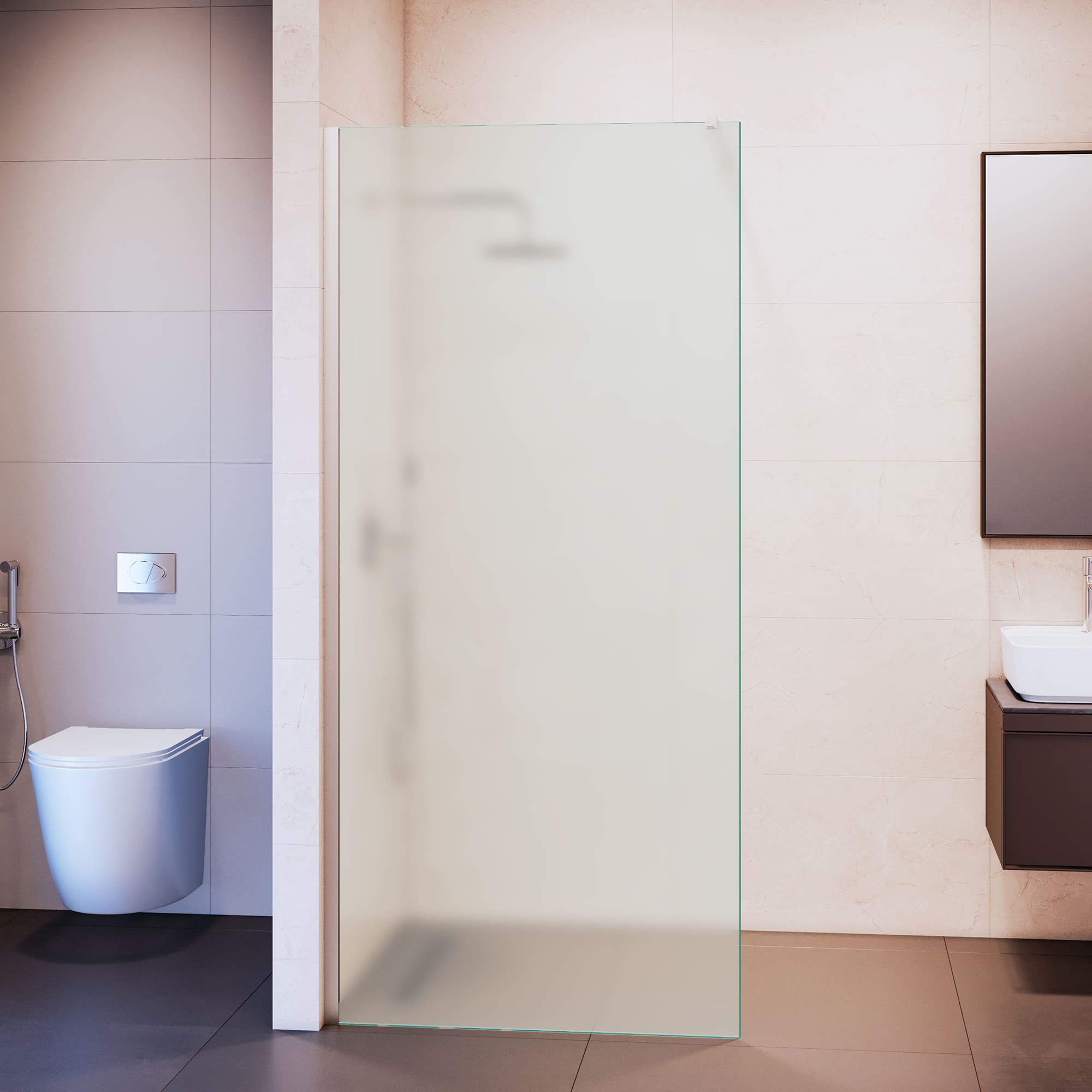 Душевые перегородки оснащены усиленным, но изящным, антикоррозийным профилем и высокопрочным закалённым стеклом, которое крепче простого в 10 раз, поэтому имеет высокую устойчивость к механическому воздействию, к бытовой химии и сохраняет эстетичный внешний вид при интенсивной эксплуатации во влажной среде. Все перегородки имеют точную геометрию поэтому идеально подходят для установки на душевой поддон, подиум или ровный пол из керамической плитки, что делает их универсальными в установке.