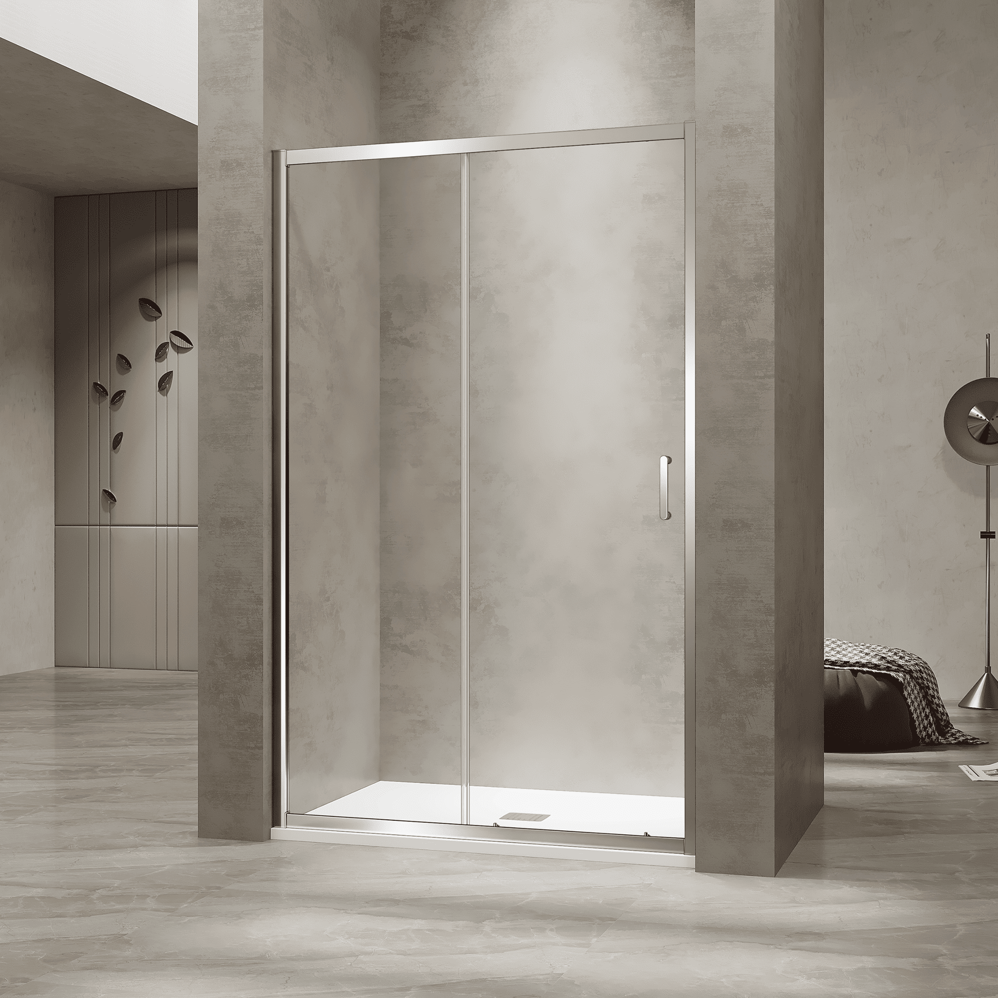 Душевая раздвижная дверь-купе в нишу PA-114 профиль хром, одностворчатая, ручка скоба