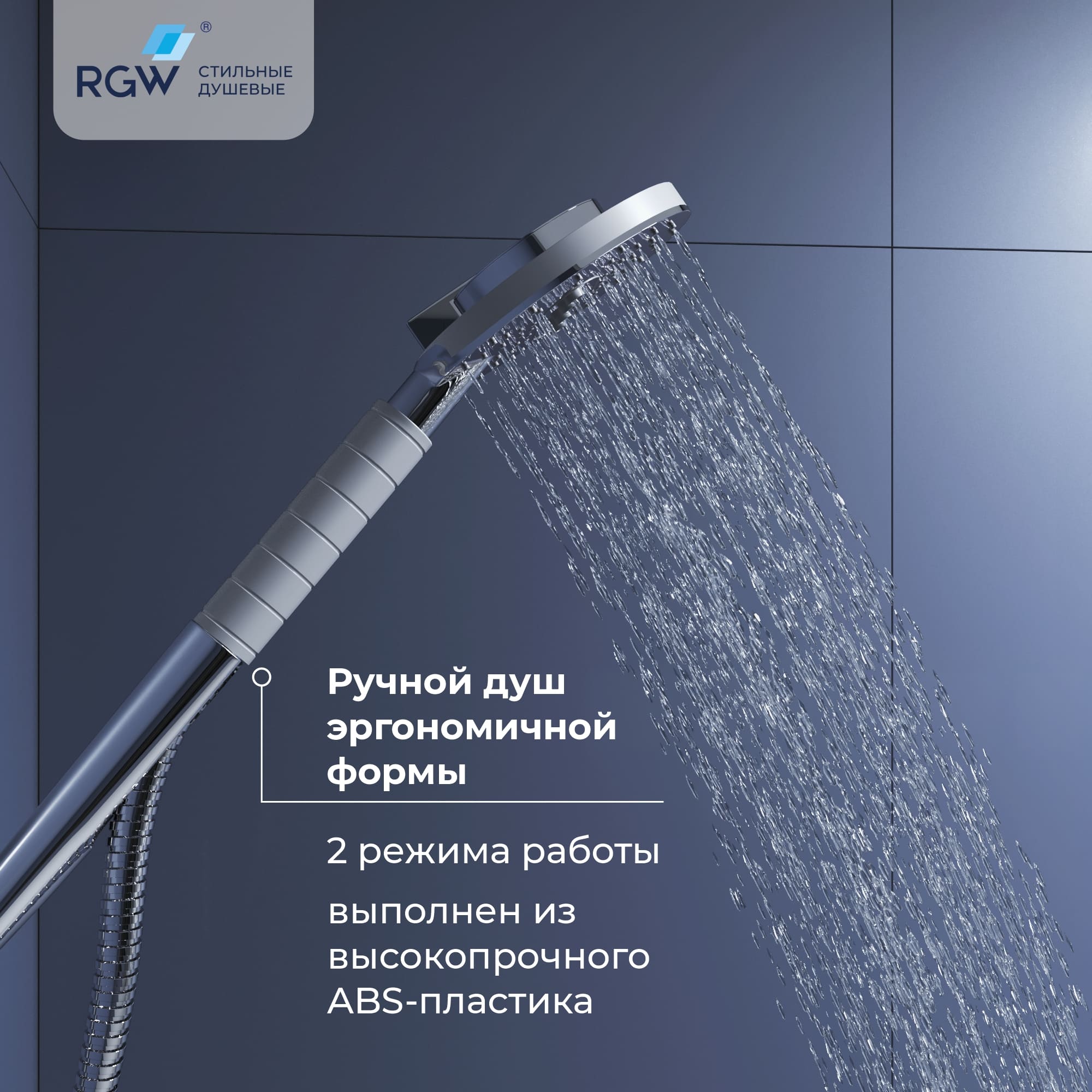 Душевая лейка с функцией ливня на позиции головного душа, обладающая режимами массажа, стойка 60 см из нержавейки с