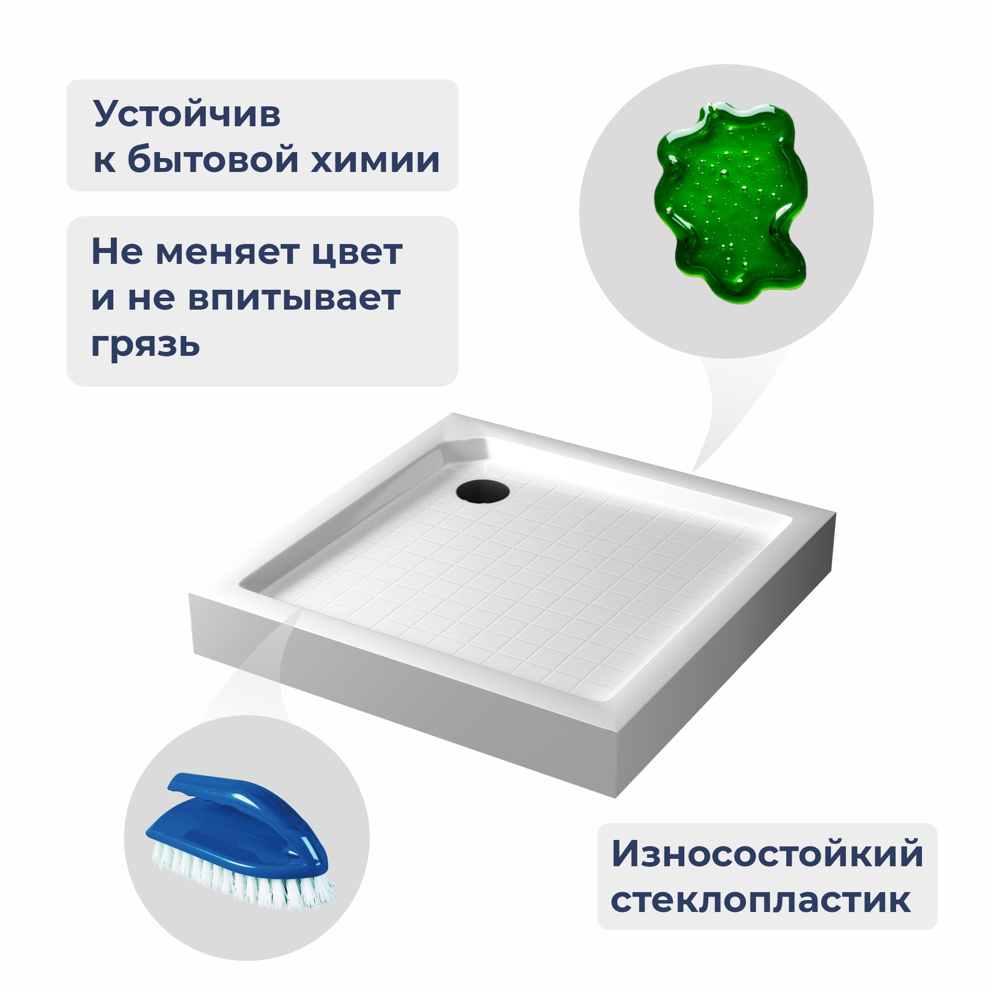 В результате получаются изделия по твердости поверхности не уступающие закалённому стеклу, а волокнистая структура материала и специальная конструкция поддонов позволяет выдерживать значительные механические нагрузки.