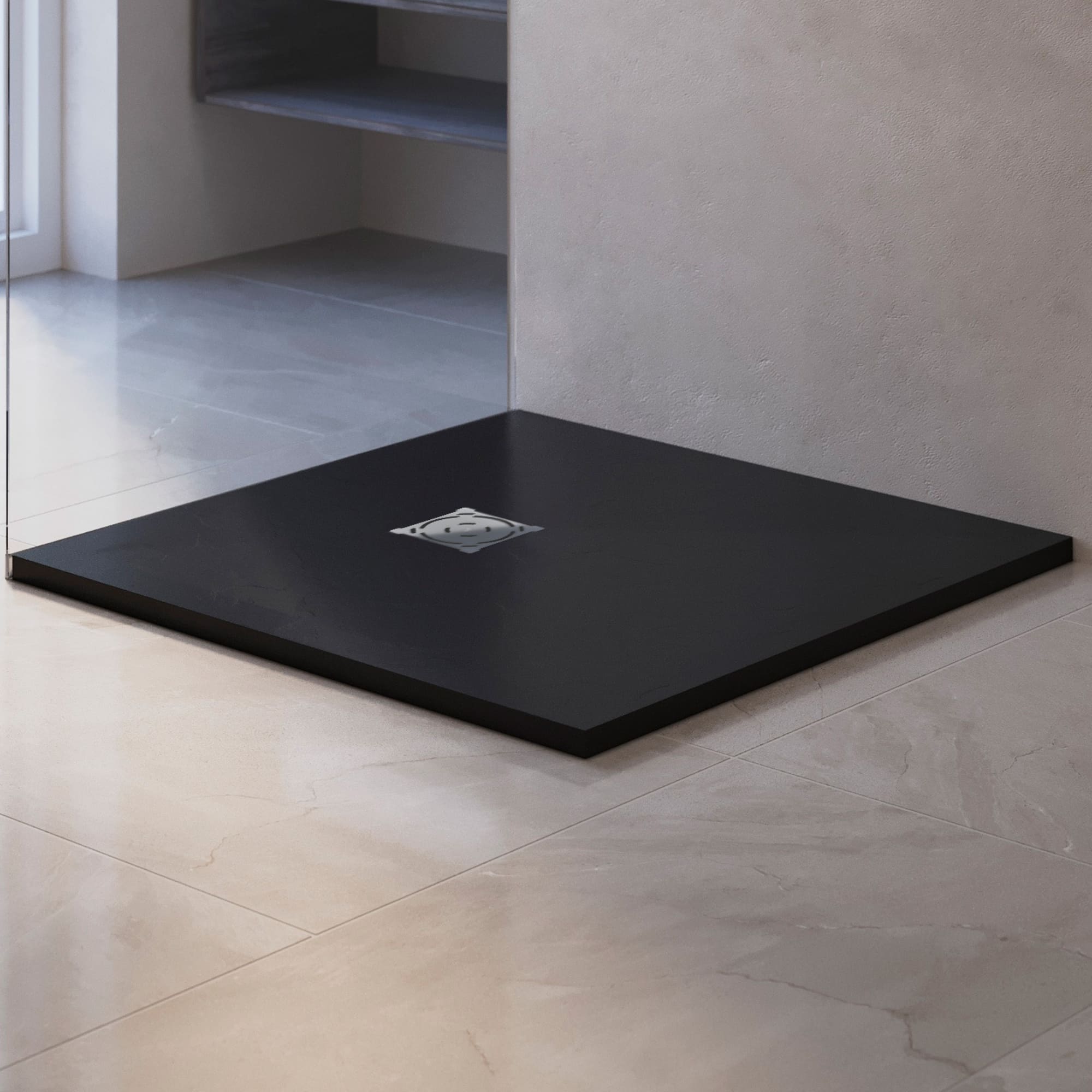 В серии душевых поддонов Stone Tray появилась новинка актуальной квадратной формы в остро-модном цвете «графит». Поддон представлен в трех размерах, но если вам нужно воплотить по-настоящему уникальный проект, материал позволяет обрезать изделие по индивидуальным меркам.