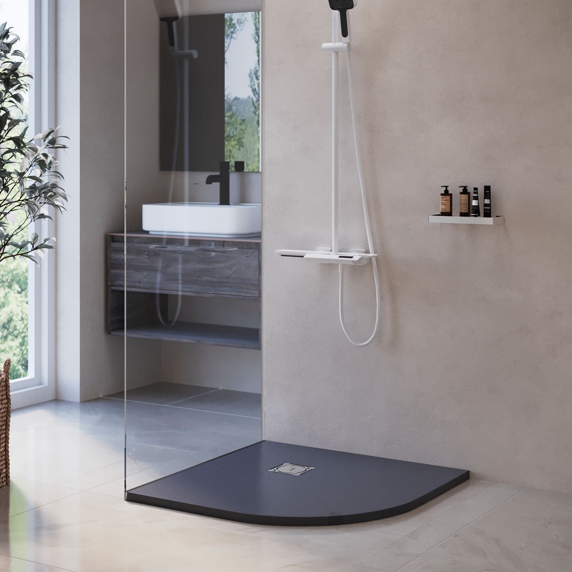 В серии душевых поддонов Stone Tray появилась новинка аккуратной полукруглой формы в остро-модном цвете «графит».
