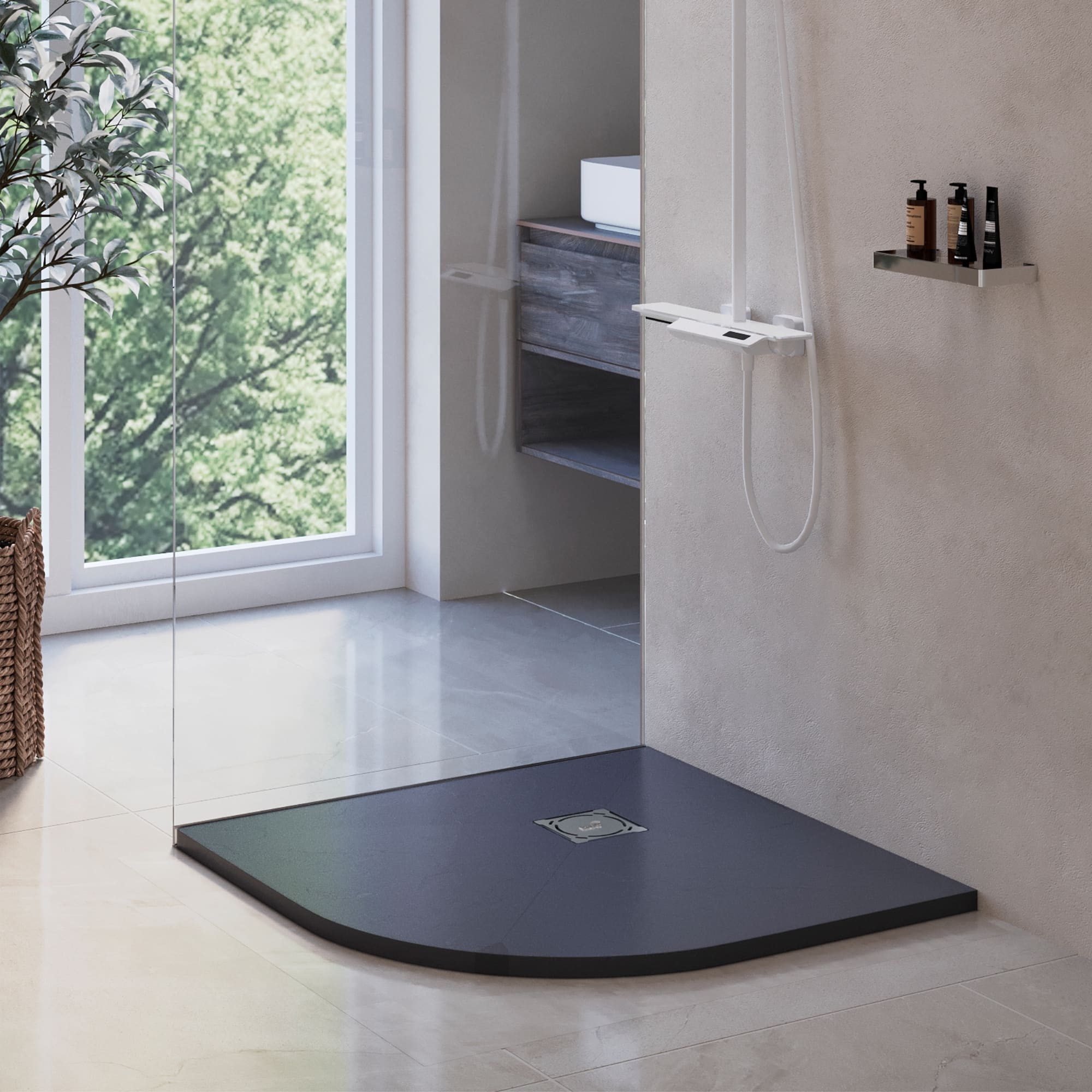 В серии душевых поддонов Stone Tray появилась новинка аккуратной полукруглой формы в остро-модном цвете «графит».
