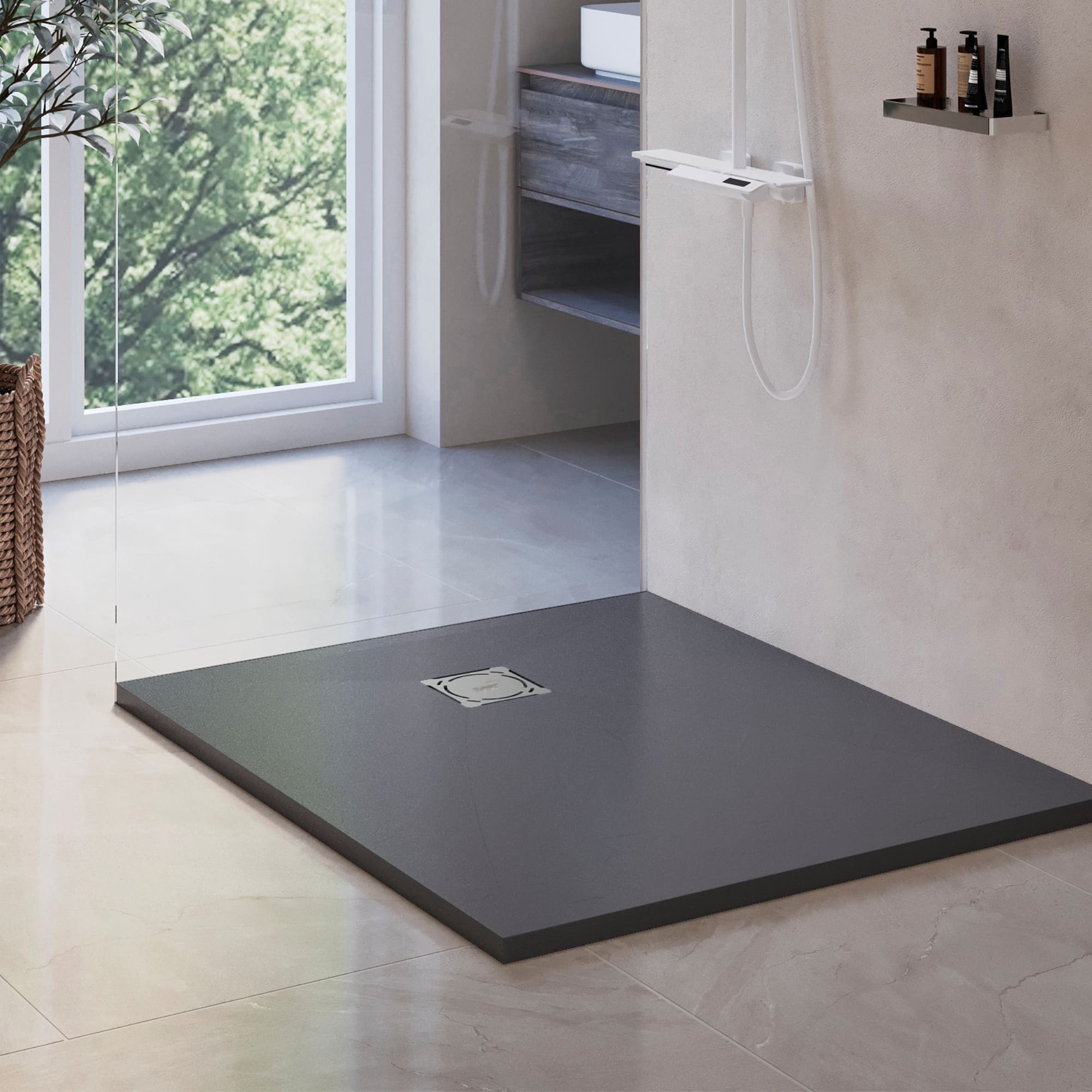 Сдержанный темно-серый цвет впишет поддон в любой интерьер, сделав особый комплимент стилям лофт и хайтек, и позволит реализовать самые яркие идеи в остальном декоре ванной комнаты.