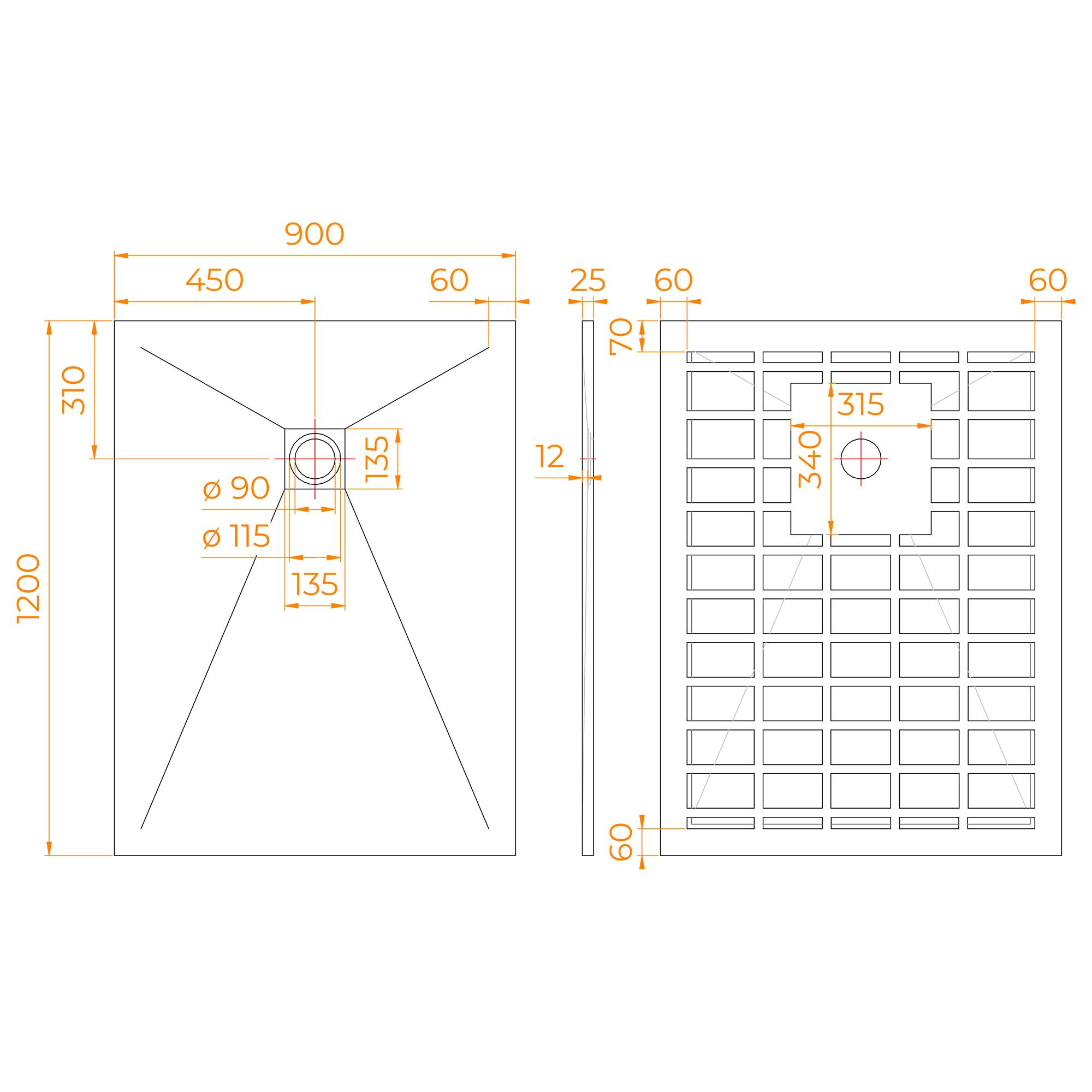 Широкий размерный ряд: от 800x800 мм с шагом в 10 см до максимального размера 900x1200 мм, что дает возможность подобрать оптимальный поддон для вашей ванной комнаты.