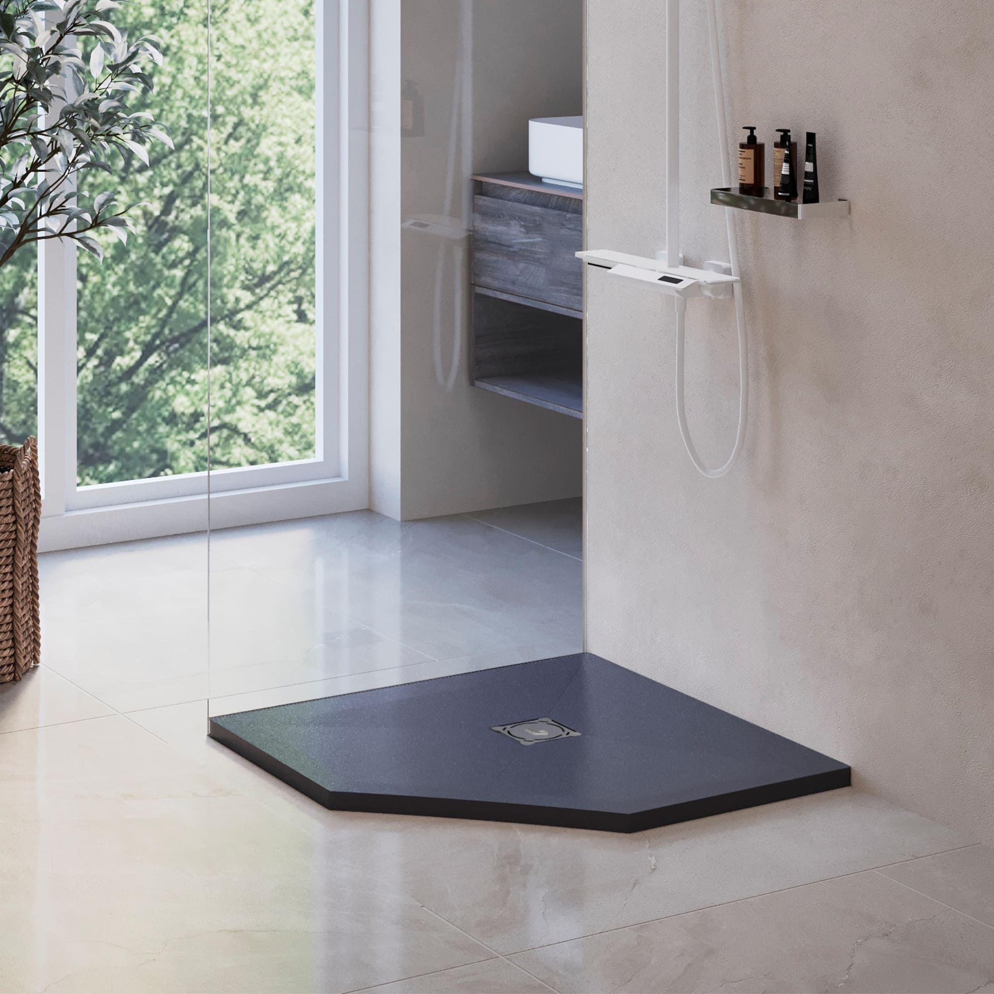 В серии душевых поддонов Stone Tray появилась новинка уникальной трапециевидной формы в остро-модном цвете «графит».