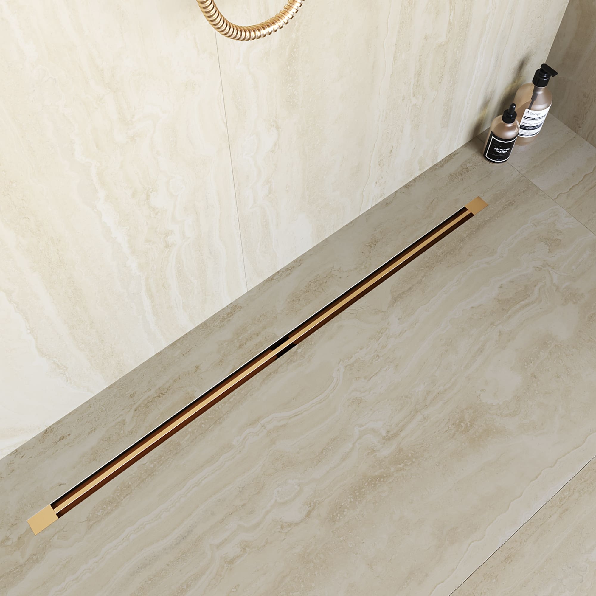 Принимающей декоративный жёлоб маскирует сливное устройство, образует щель, куда сливается вся вода из душевого пространства. Для того чтобы вода эффективно отводилась в трап, на этапе монтажа необходимо обеспечить уклон облицовочной плитки в сторону принимающего жёлоба.
